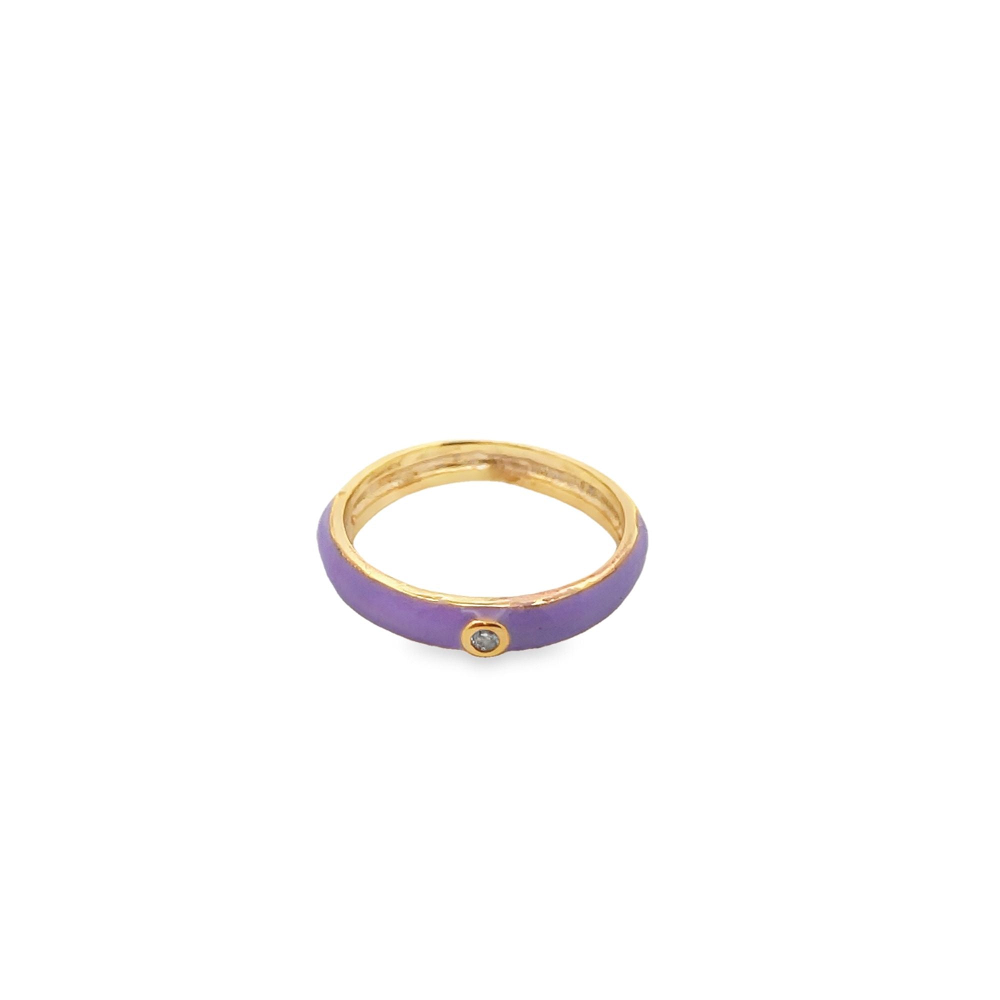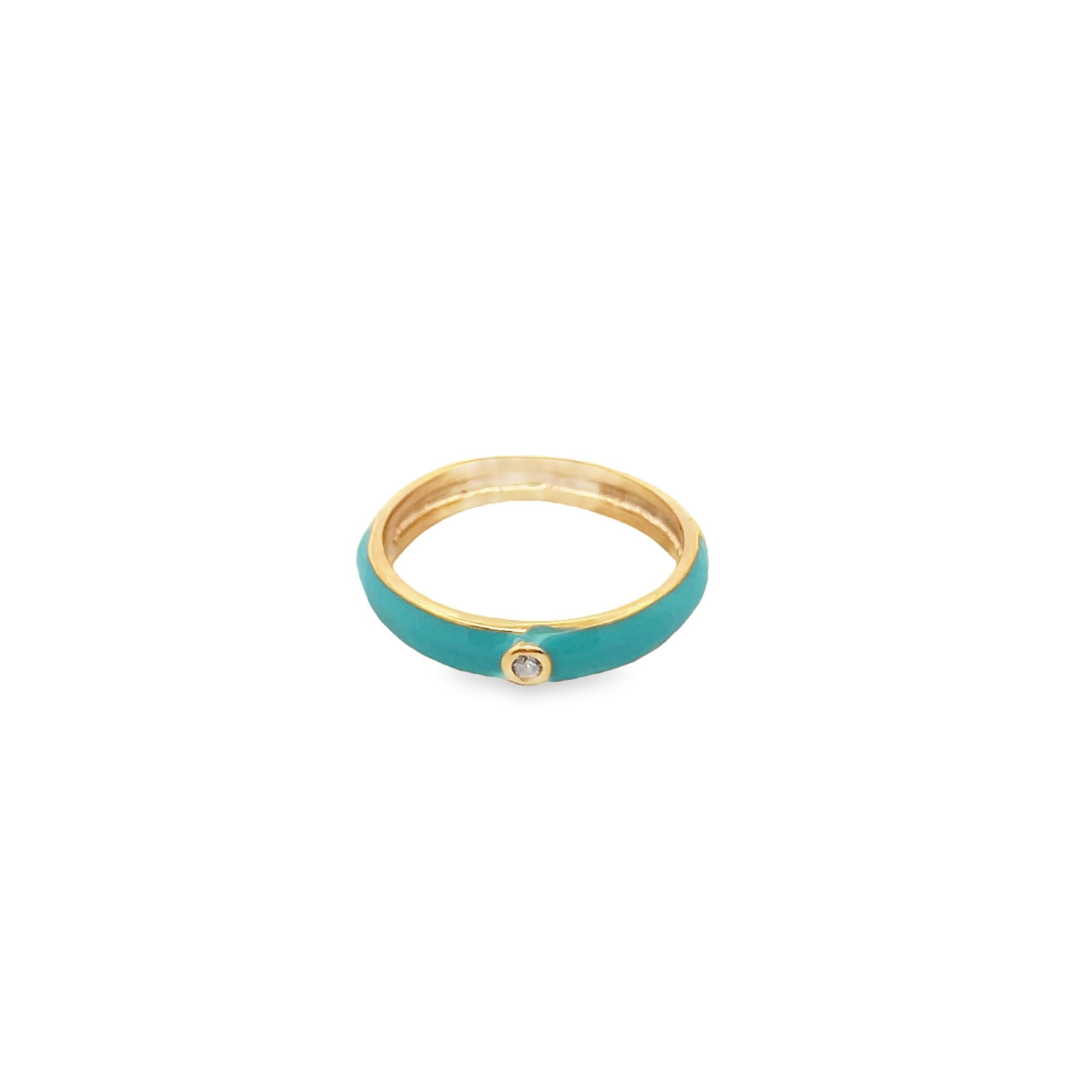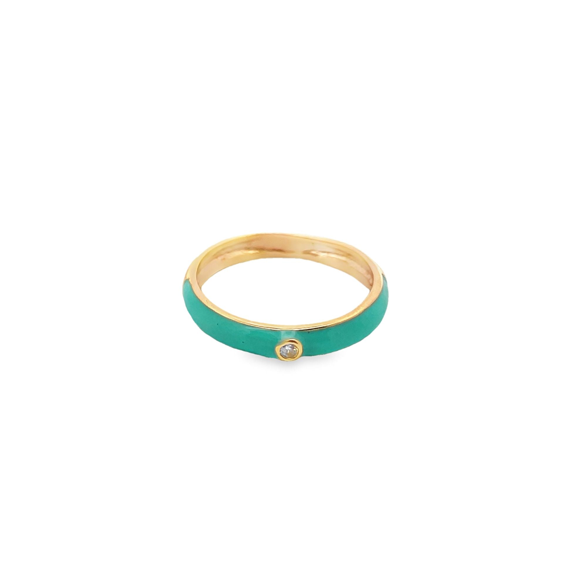 Enamel Ring Band With A Single CZ Stone (D54B)