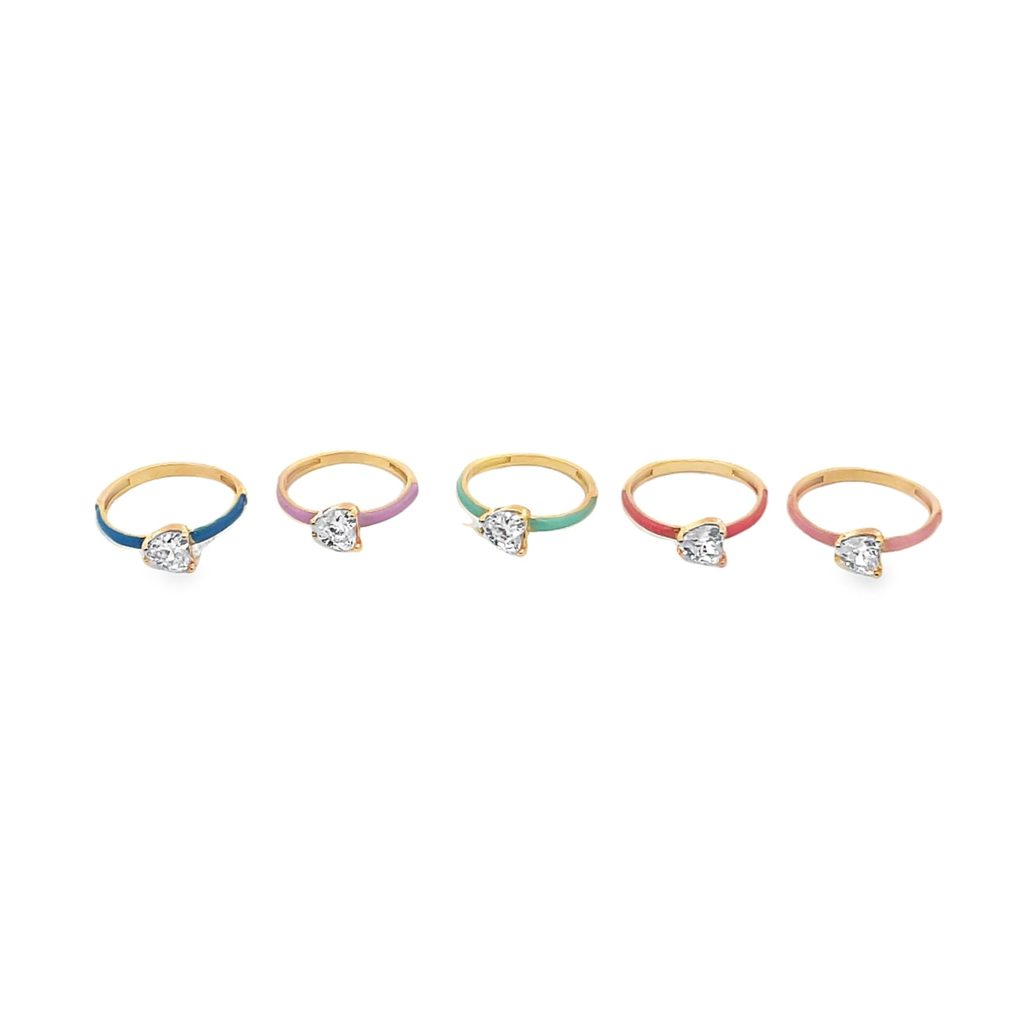 Heart CZ Stone Colorful Enamel Ring (D39)