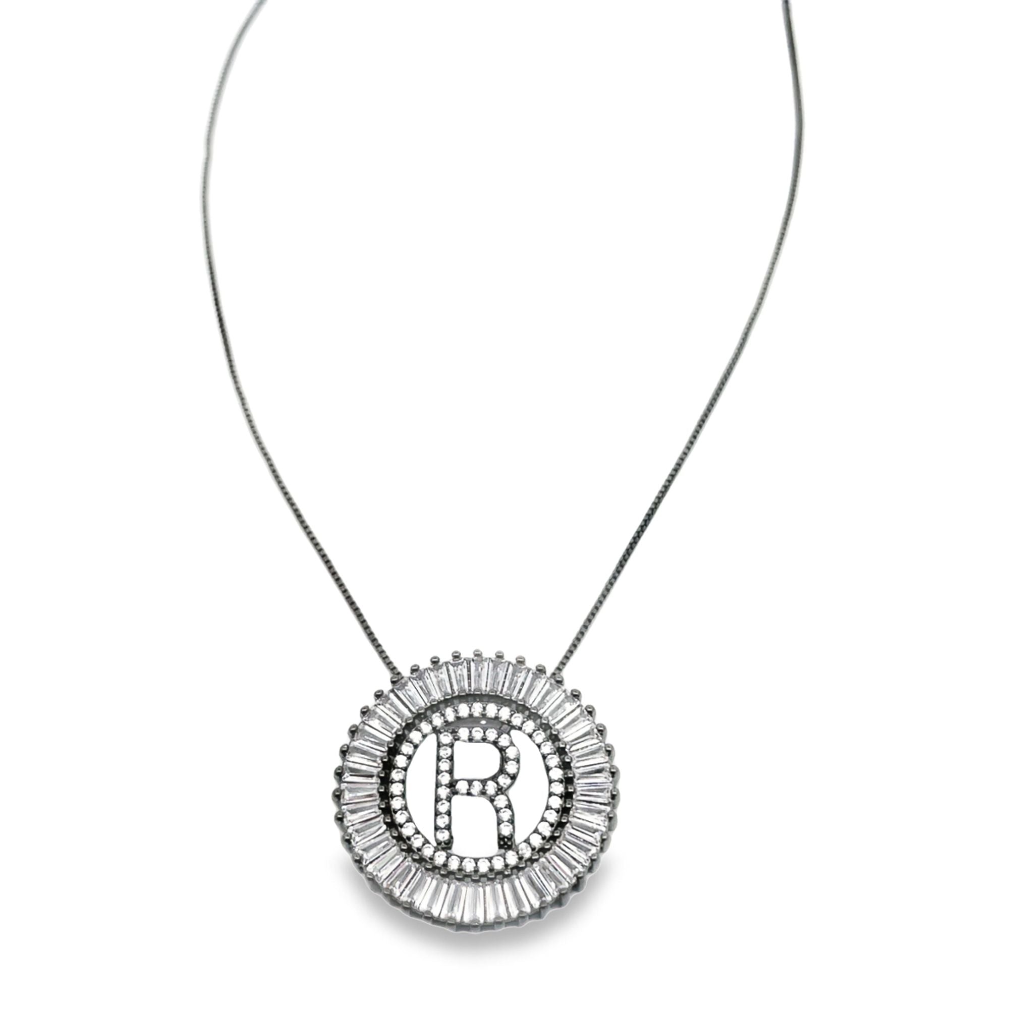 Initial Name Necklace With Multi Color CZ Cubic Zirconia Stones (G68)