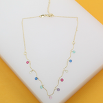 18k Gold Filled MultiColor CZ Stone Charms Necklace
