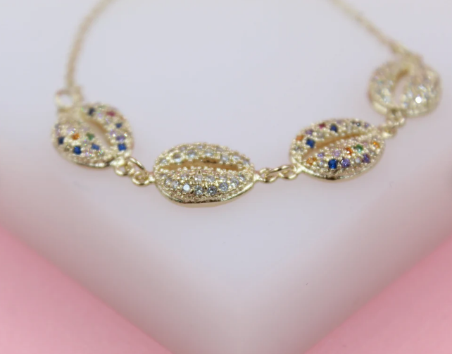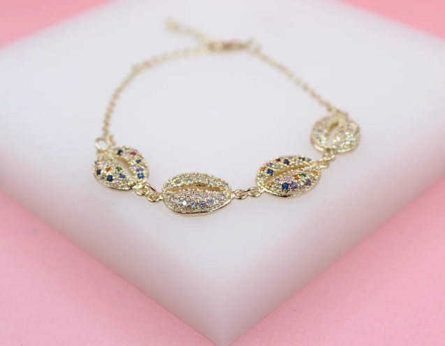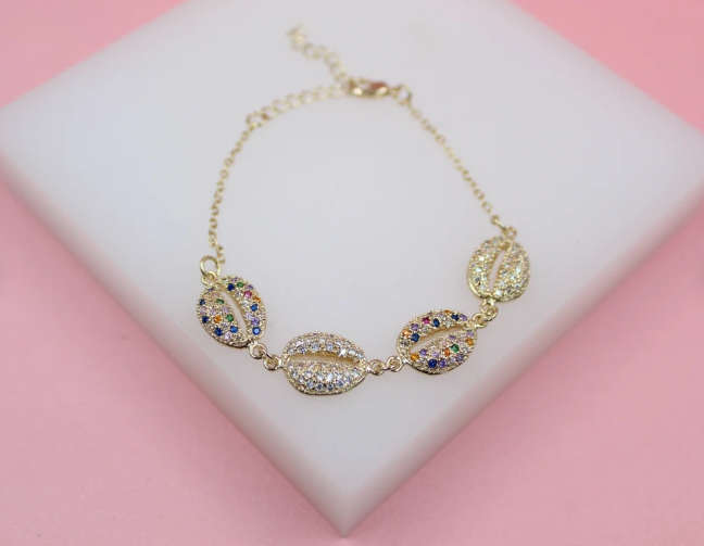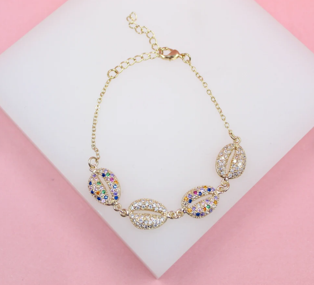 Multicolor Zirconia Puka Shell Charm Bracelet (I164)