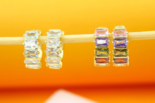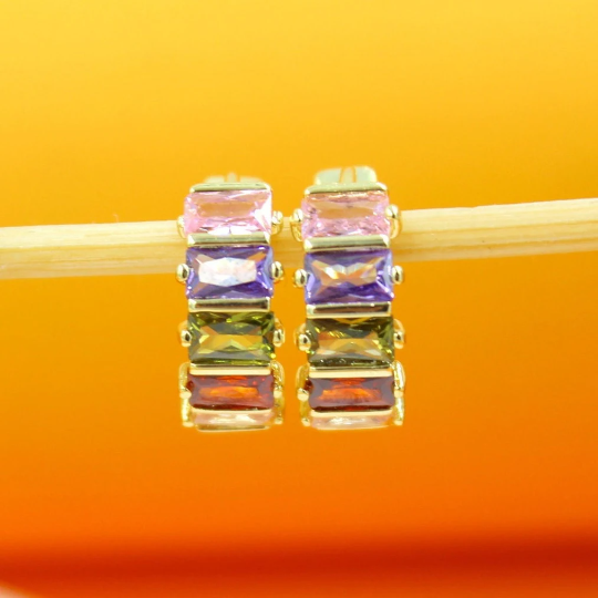 18K Gold Filled Multicolored CZ Huggies (L73)