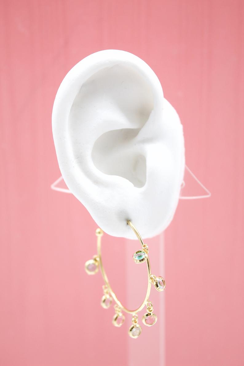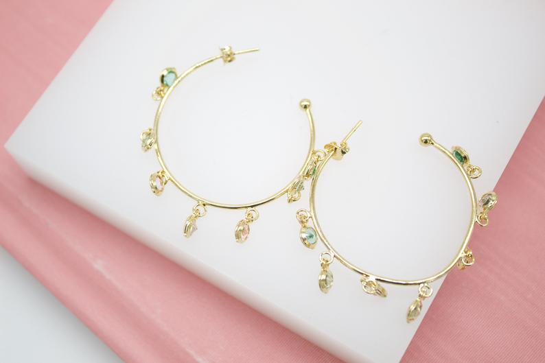 18K Gold Filled Open Hoop Dangle Stud Earrings With MultiColor Stones