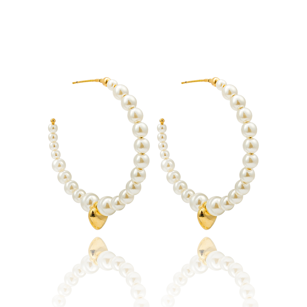Open Hoop Synthetic Pearl Earrings With Heart Charm