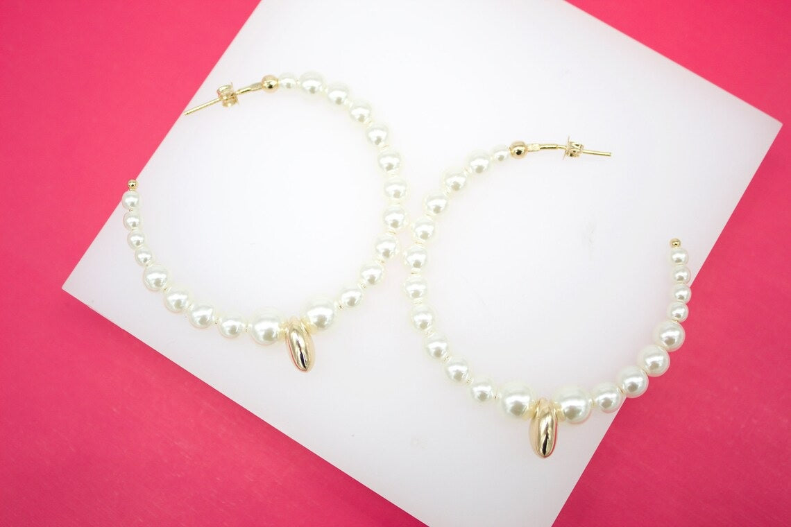 Open Hoop Synthetic Pearl Earrings With Heart Charm (K65-66)