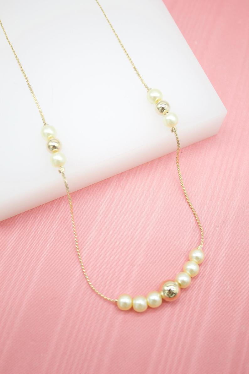 18K Gold Filled Pearl & Gold Bead Designed Chain Necklace (F245)