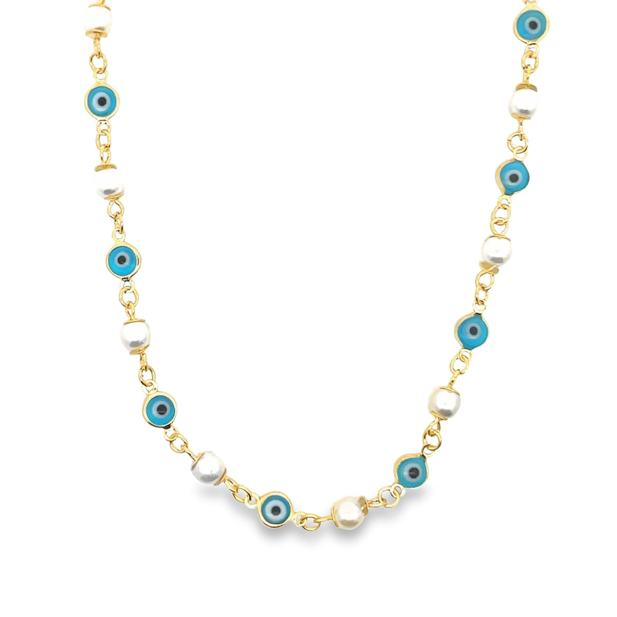 Pearl Light Blue Evil Eye Link Necklace (G204)