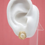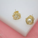 18K Gold Filled Pearl Stud Earrings With Golden Wraps (L128)
