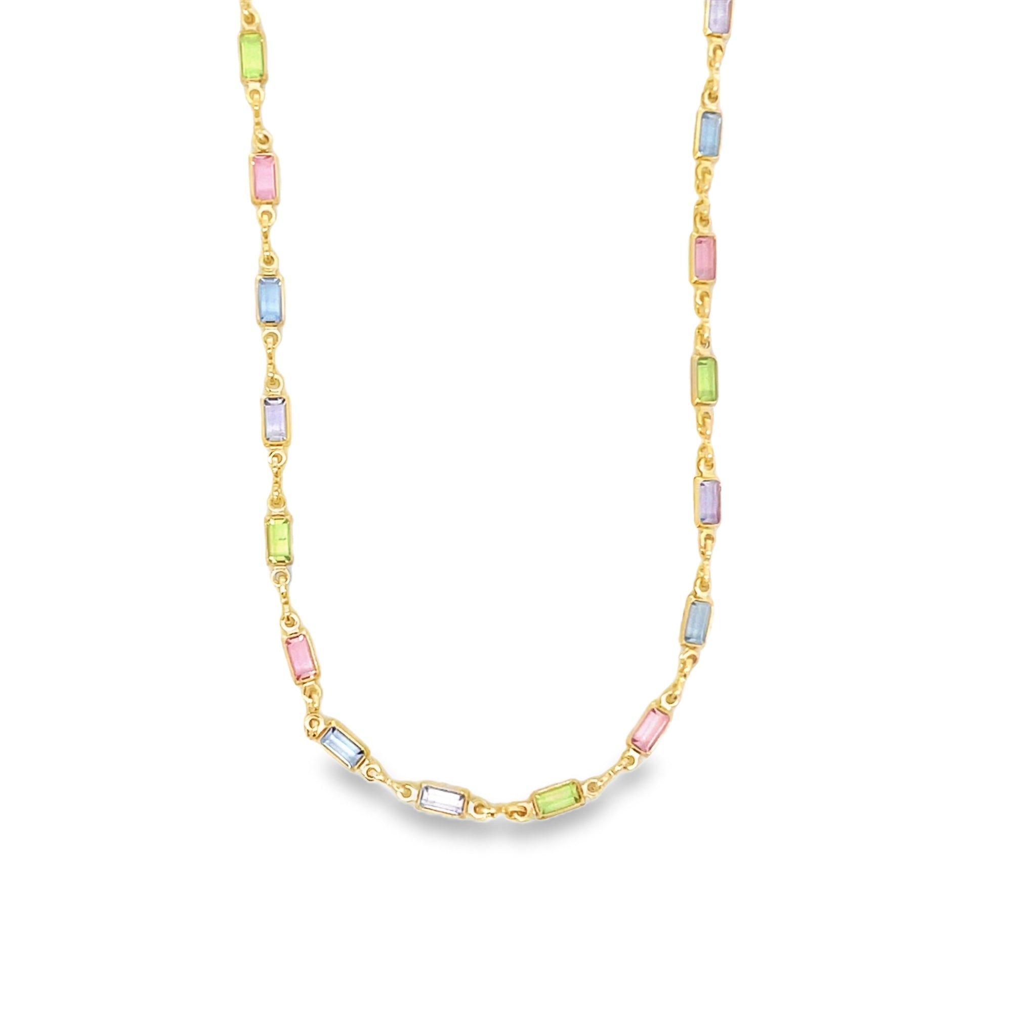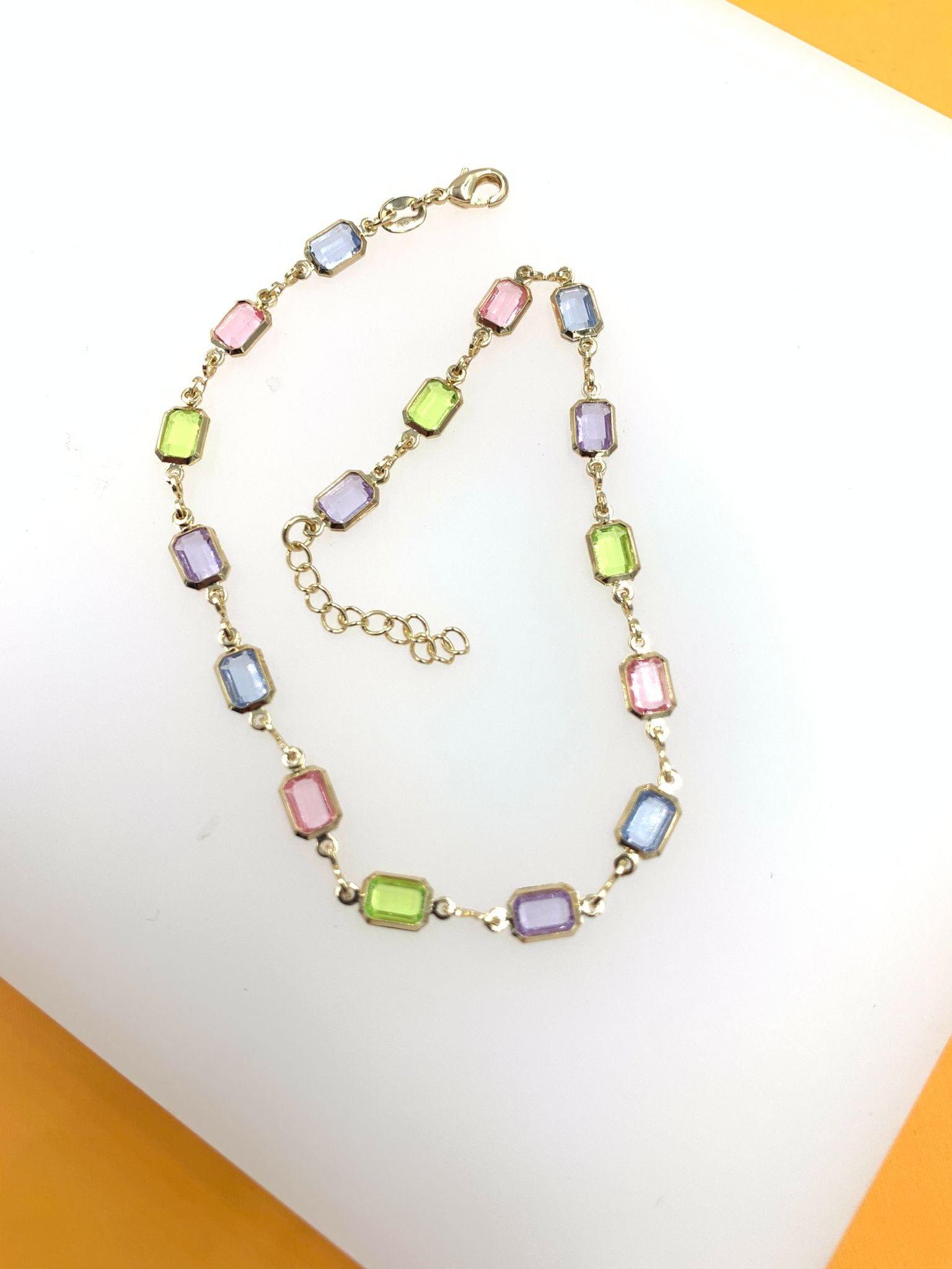 18K Gold Filled Rectangle Multicolor Stone Link Necklace (H116)(E212)(I19A)