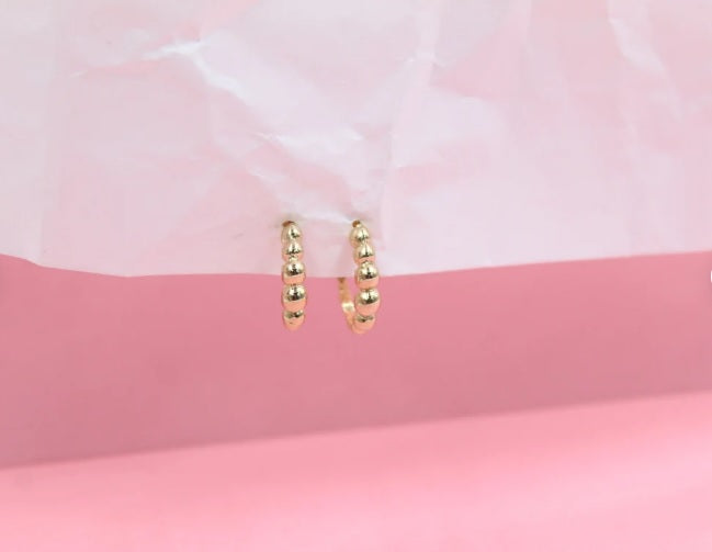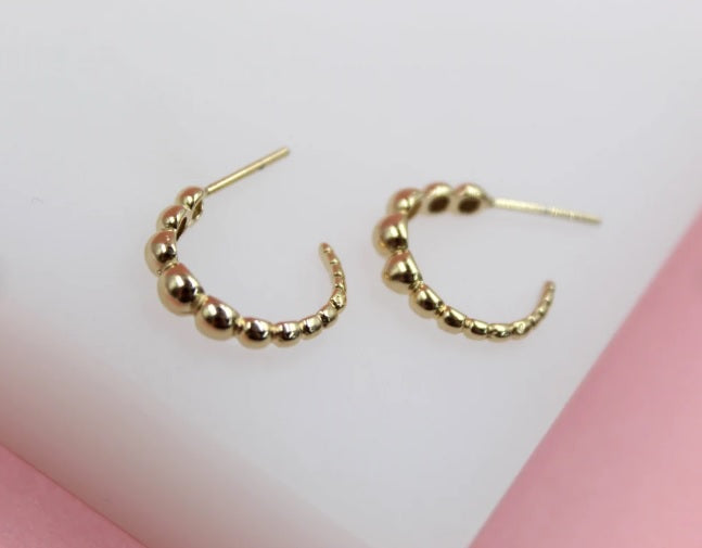 18K Gold Filled Round Golden Hollow Beaded Open Hoop Stud Earrings (K88)