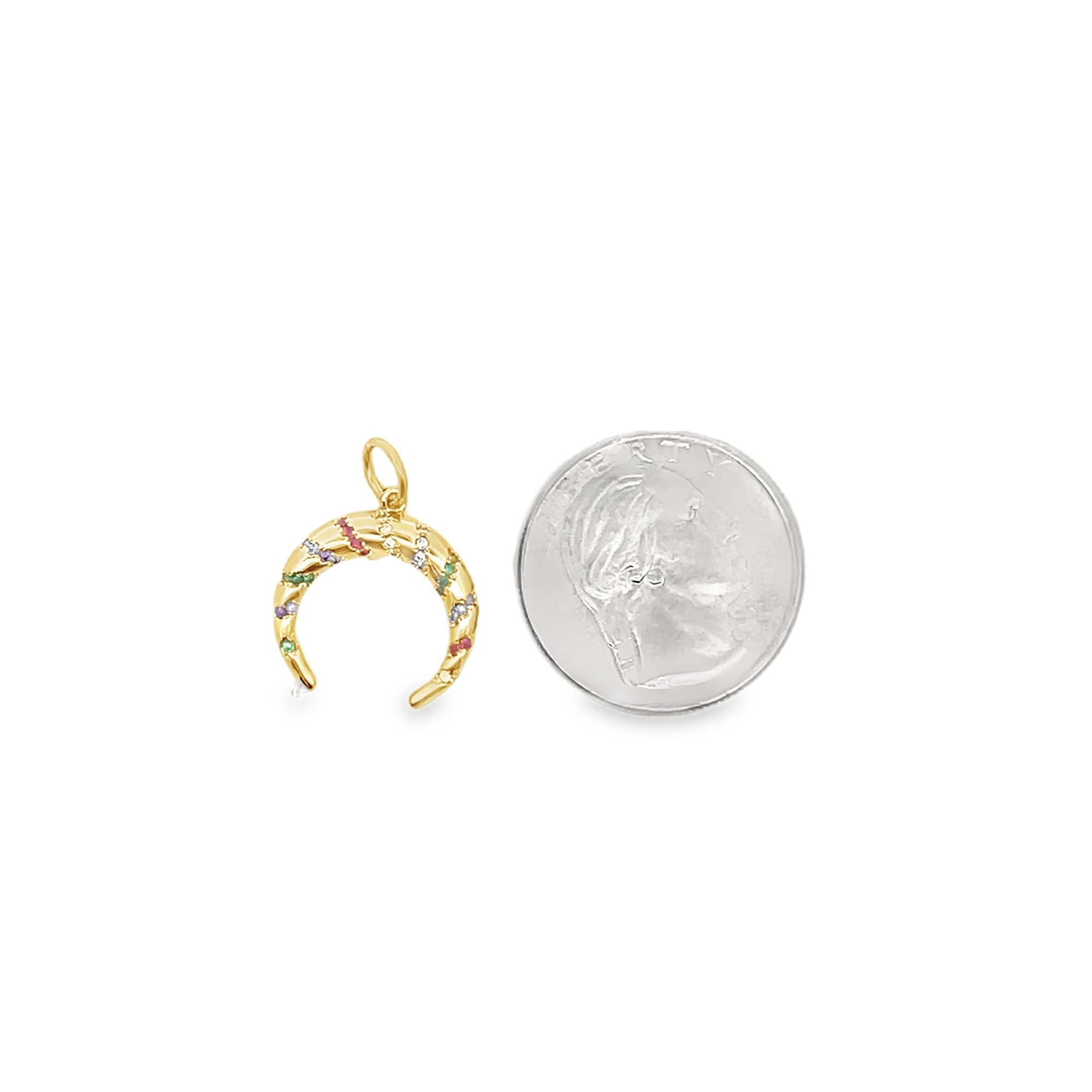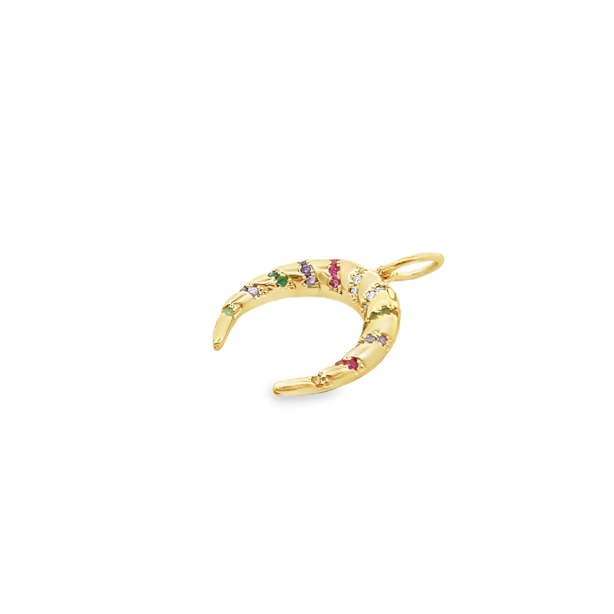 18K Gold Filled Slim Croissant Pendant With Colorful CZ Stones