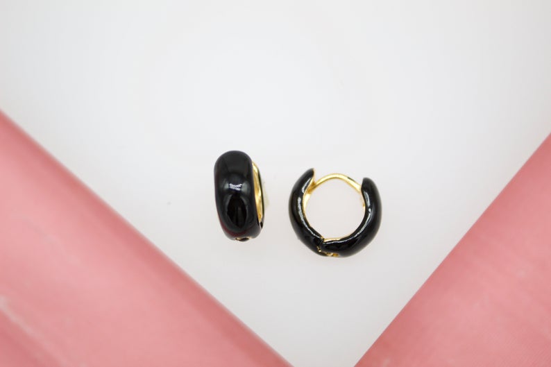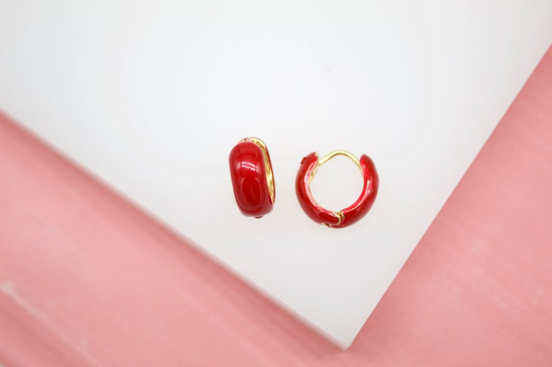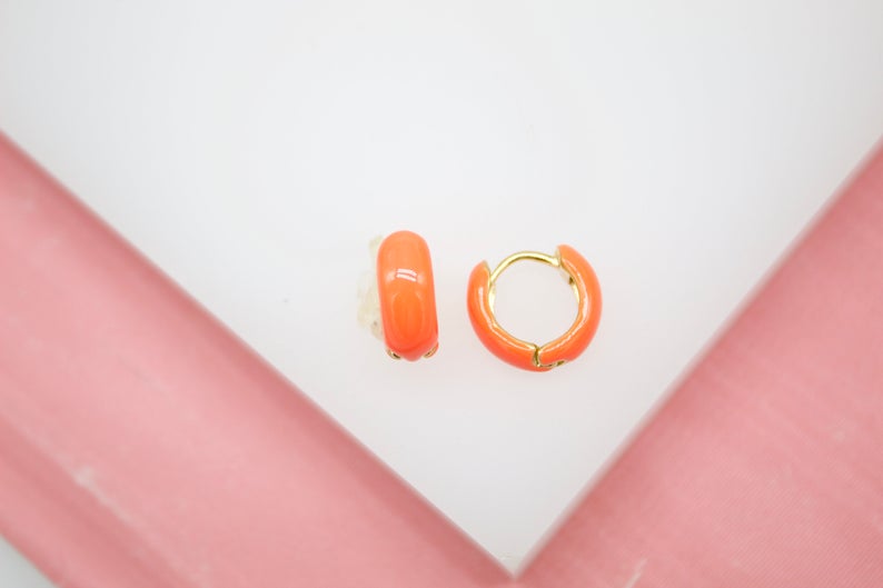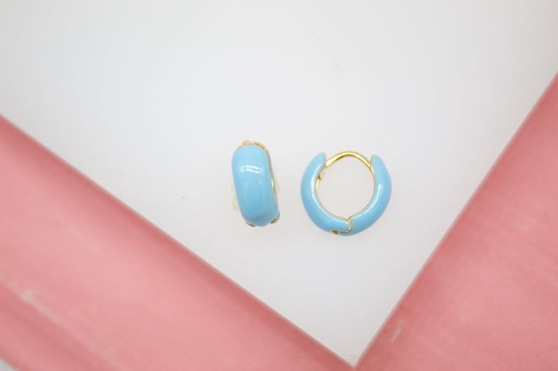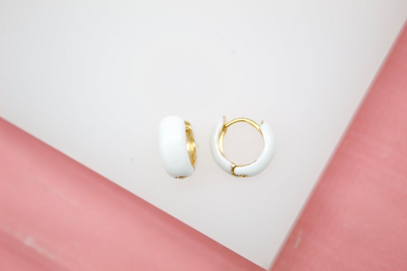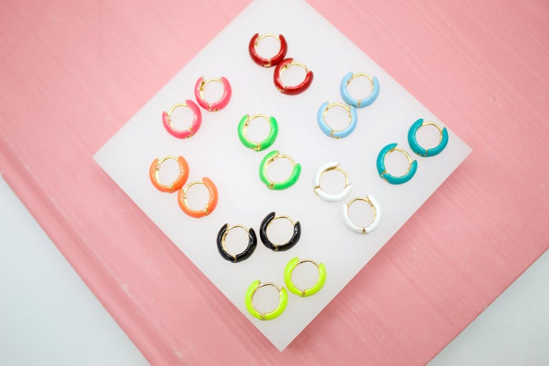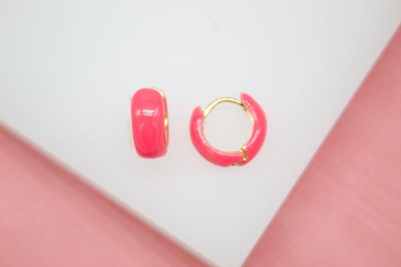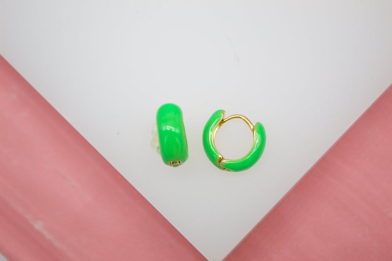18K Gold Filled Small Enamel Neon Color Round Huggies Earrings (L241)