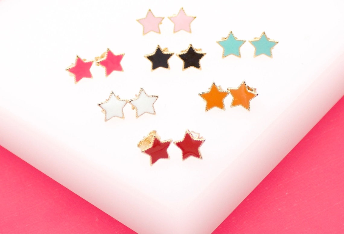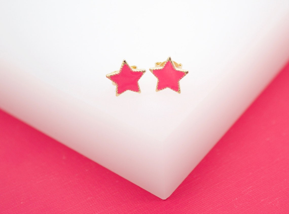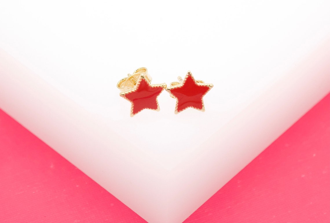 18K Gold Filled Small Enamel Star Stud Earrings (L153)