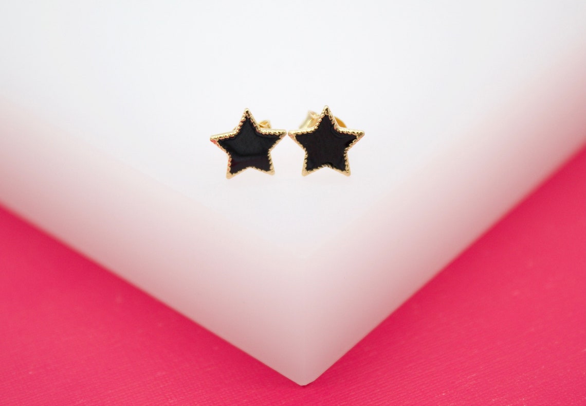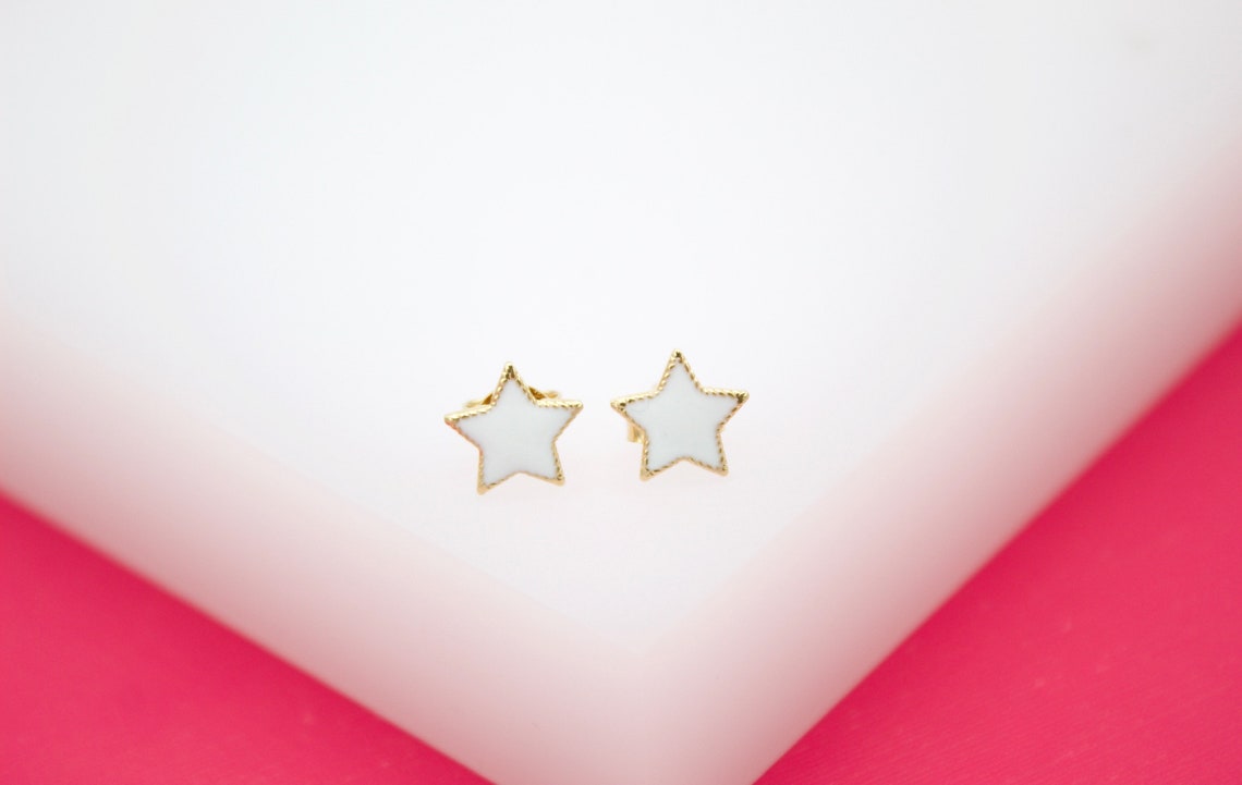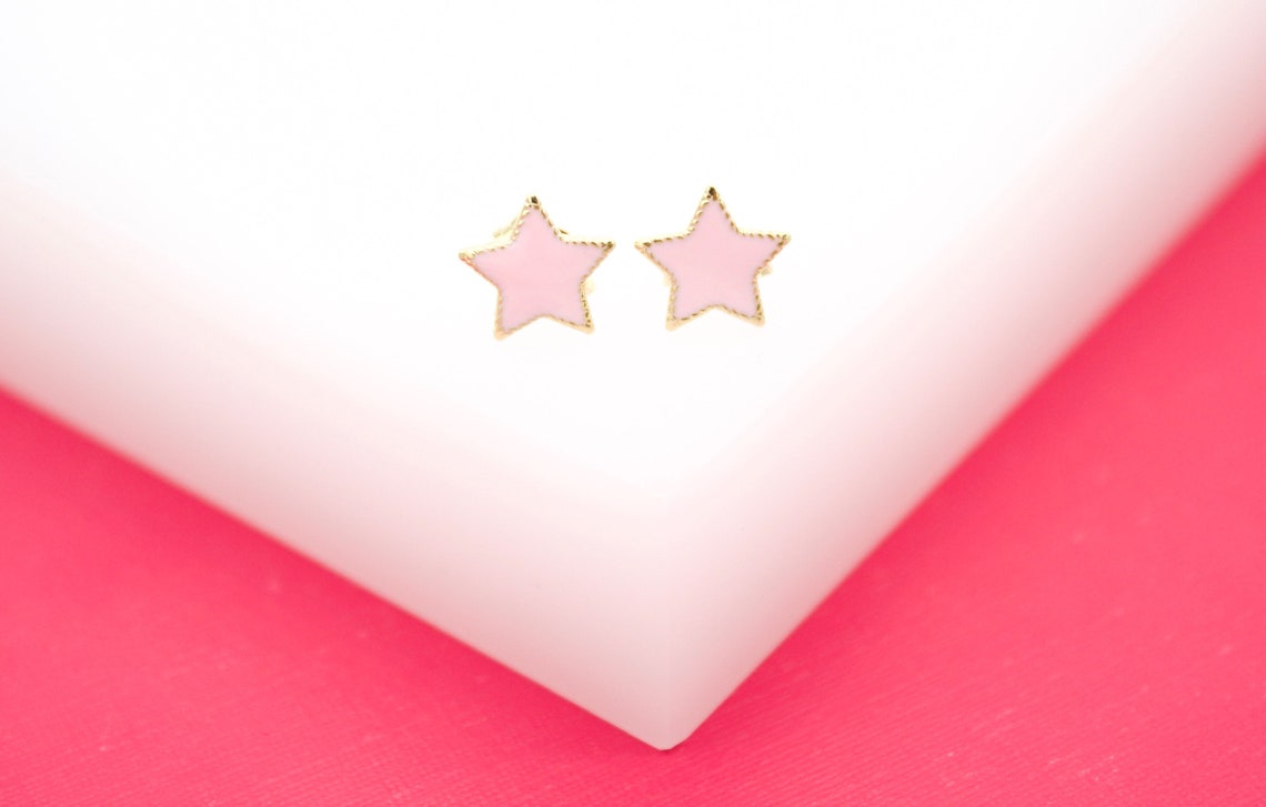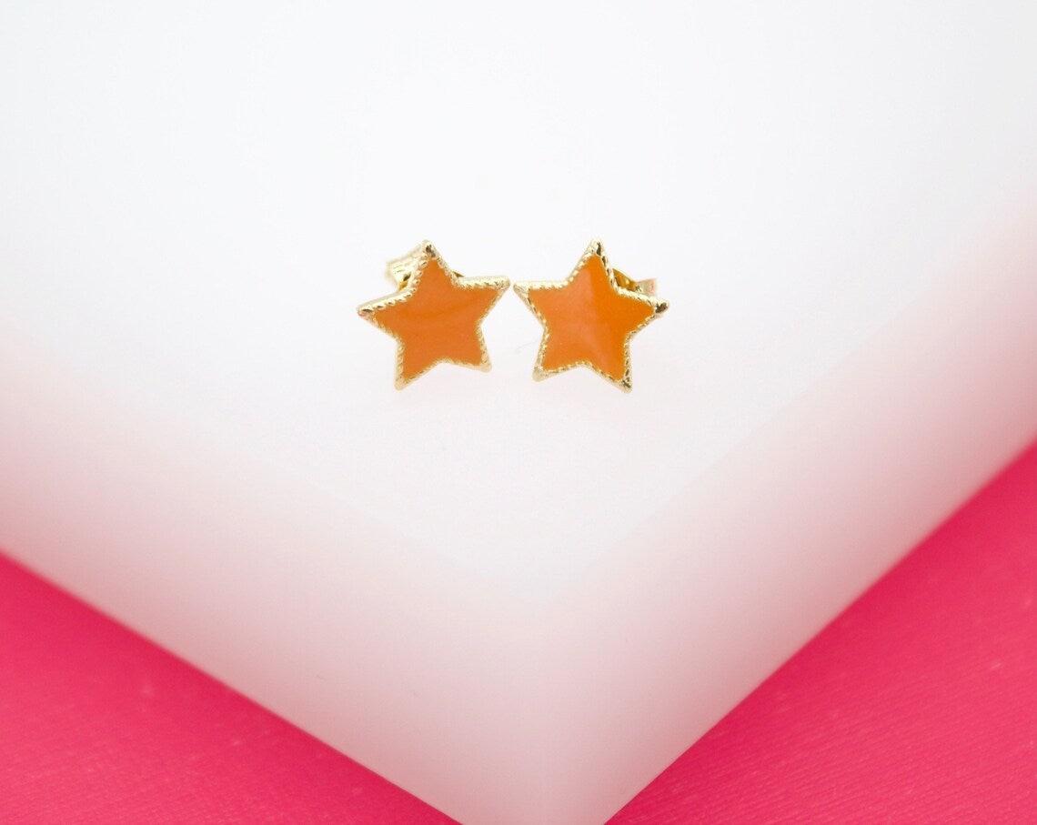 18K Gold Filled Small Enamel Star Stud Earrings (L153)