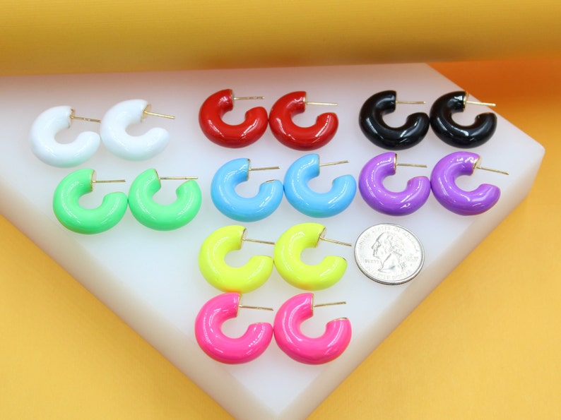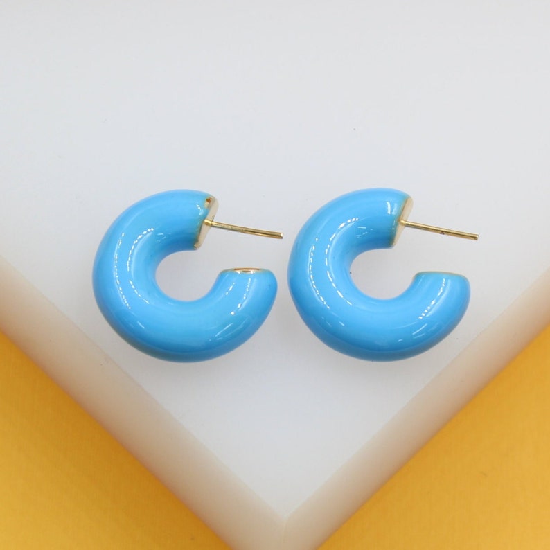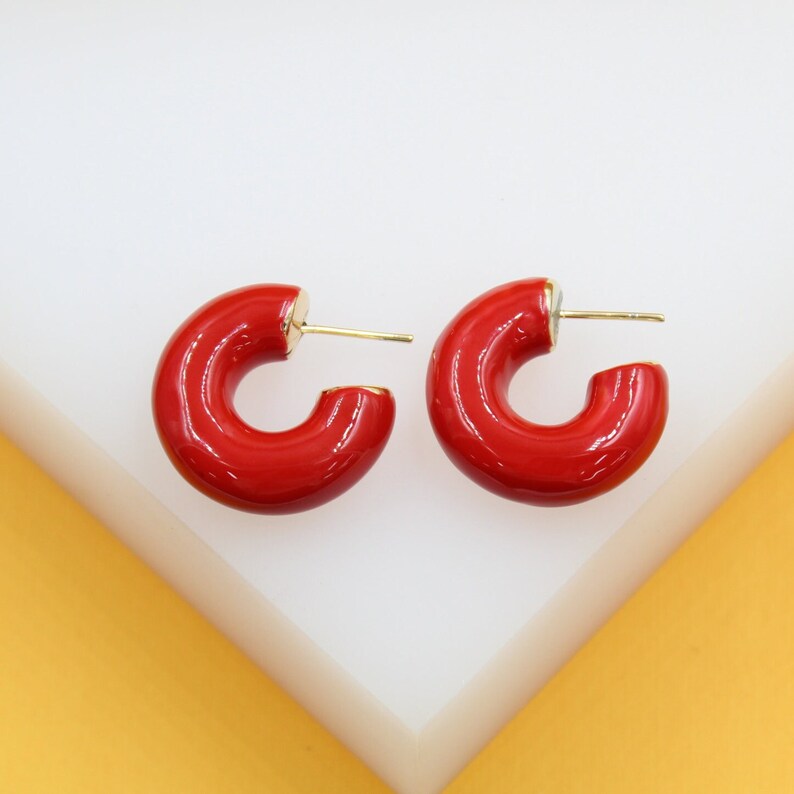 18k Gold Filled Small Thick Colorful Open Hoops (J43)