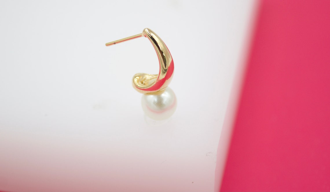 18K Gold Filled Smooth Oval Studs With Synthetic Pearl Earrings