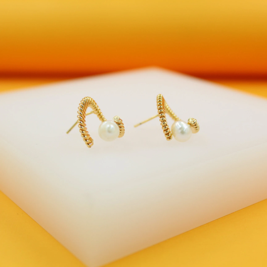 18K Gold Filled Spiral Pearl Hoop Earrings (L63A)