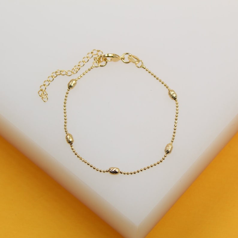 18K Gold Filled Textured Beaded Ball Chain Bracelet (G231)(I75A)