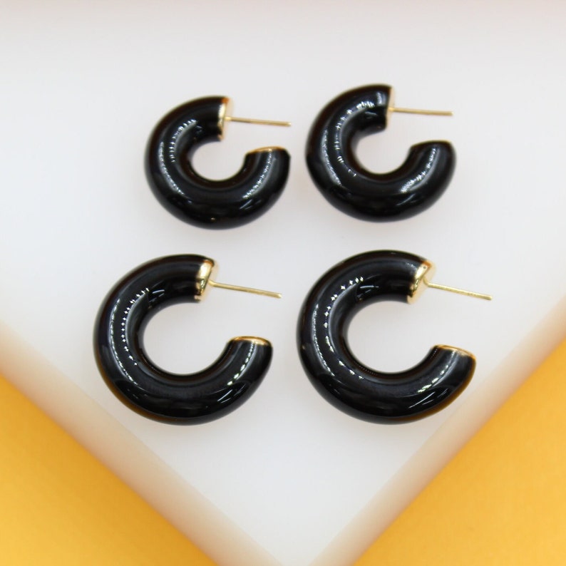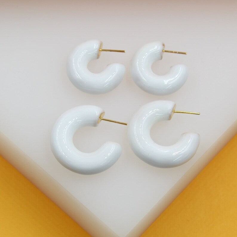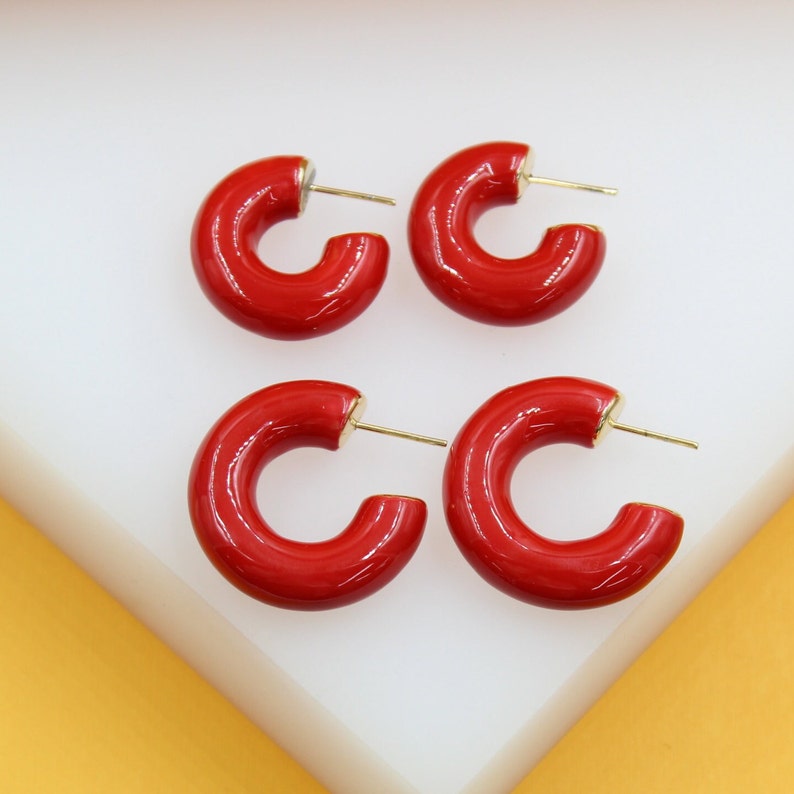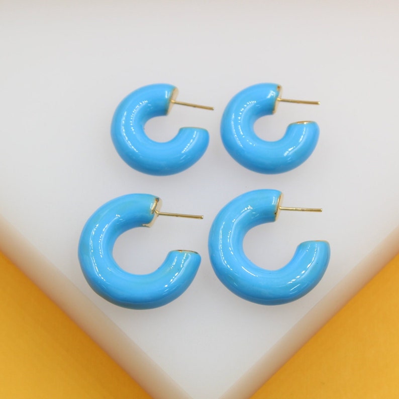 18k Gold Filled Thick Colorful Neon Enamel Open Hoop Earrings (J43,J43A)
