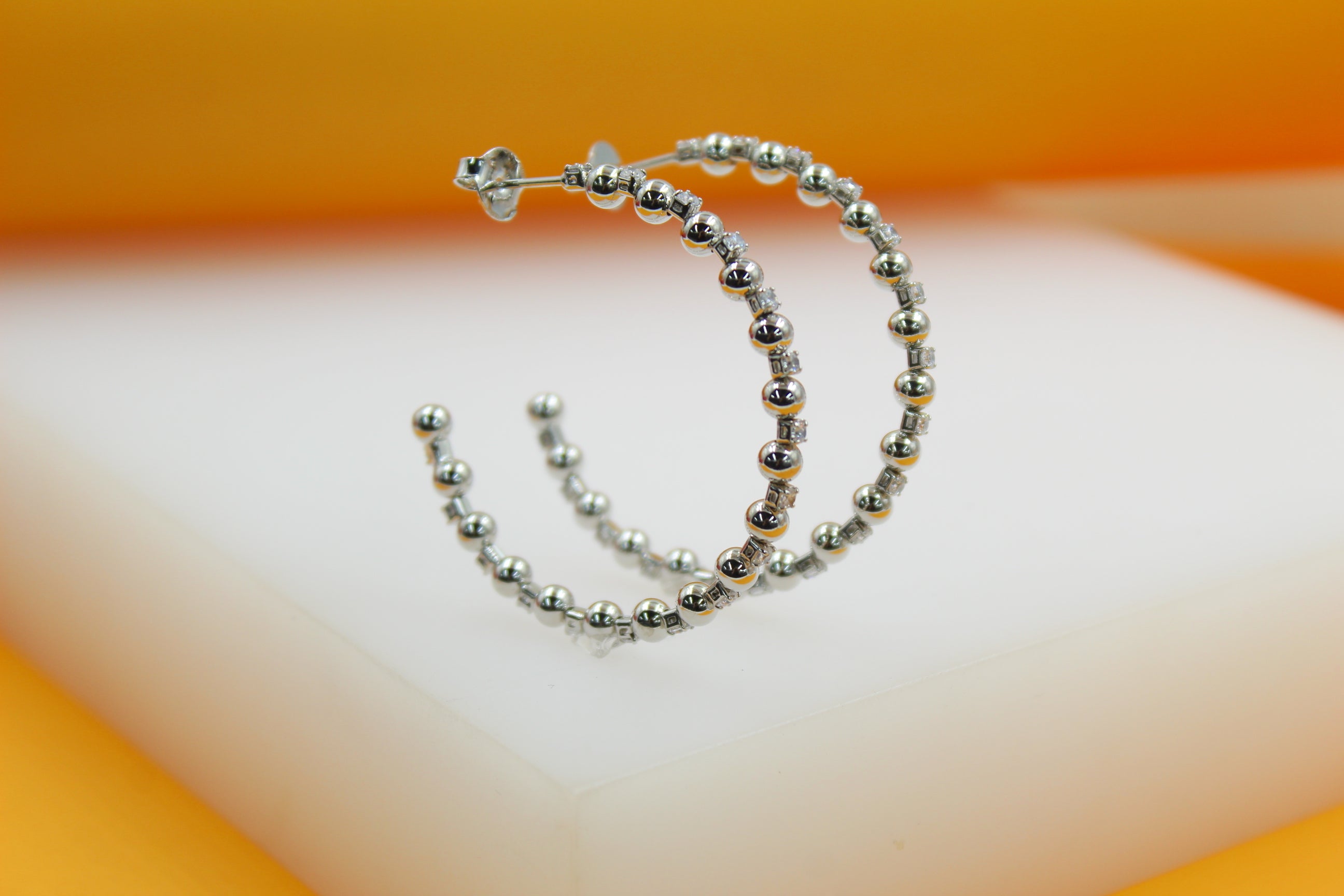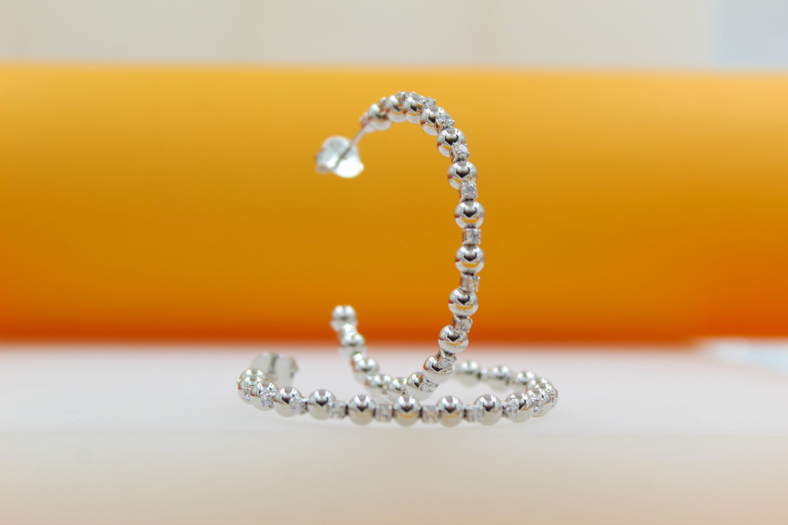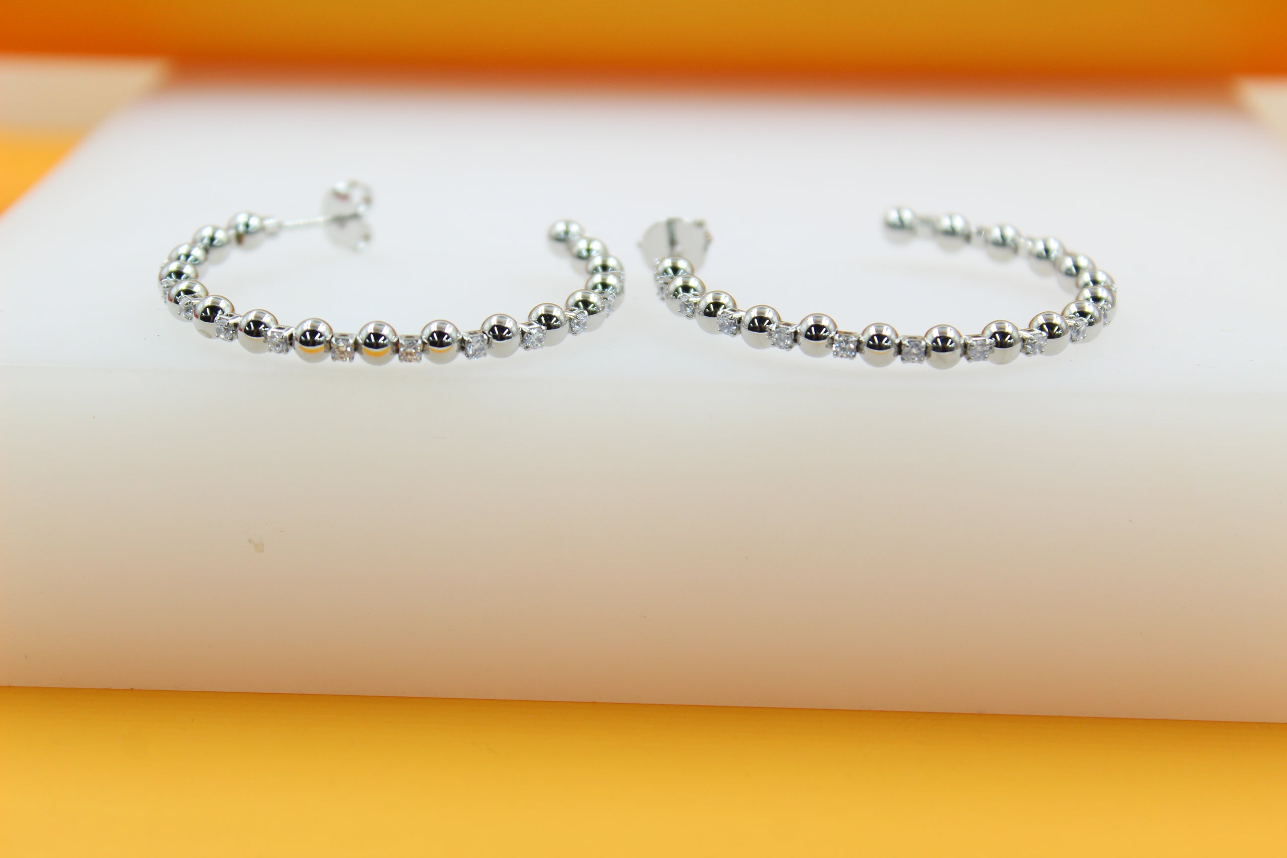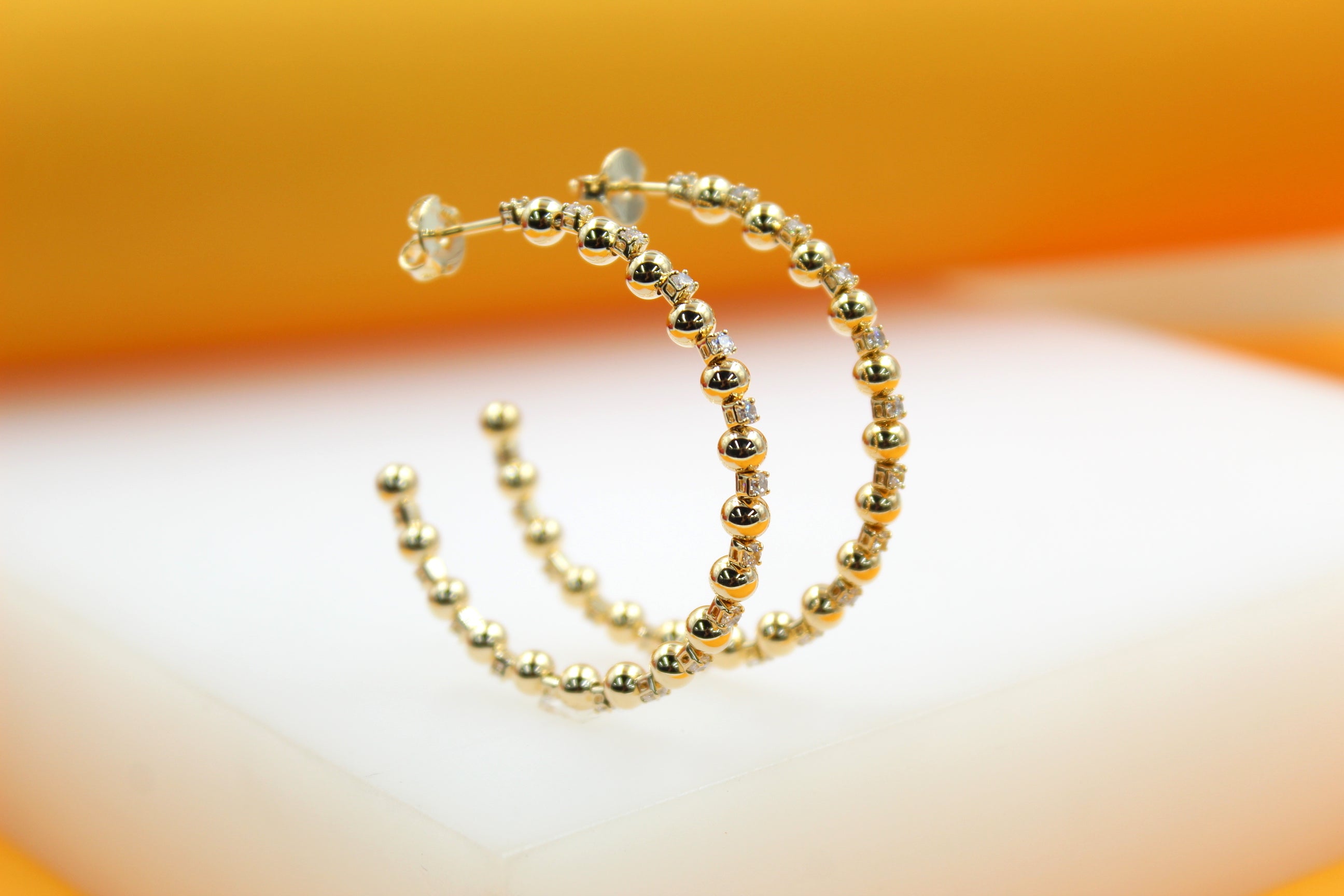 18K Gold Filled Zirconia Beaded Open Hoop Earrings (K78A)
