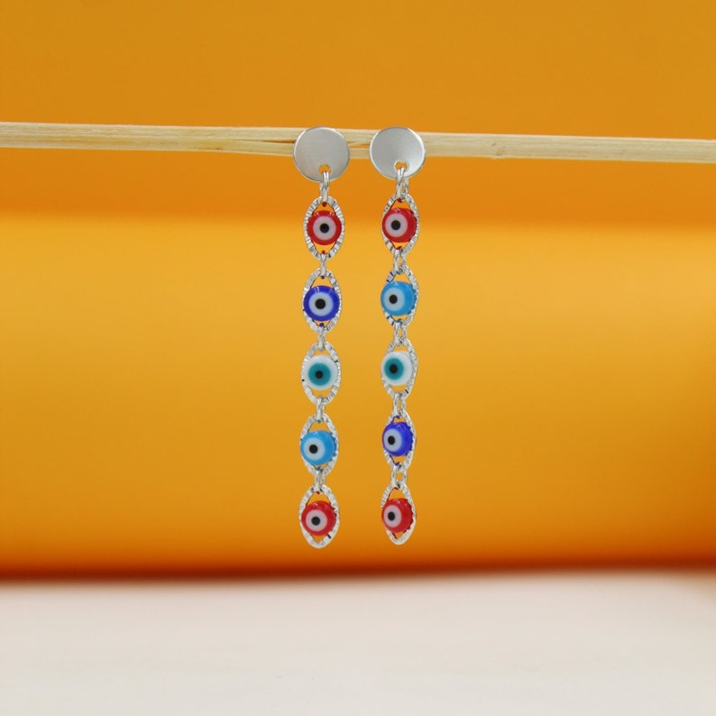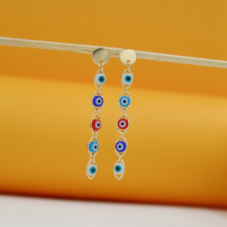 18K Gold Multi-Color Evil Eye Dangle Earring (K49)