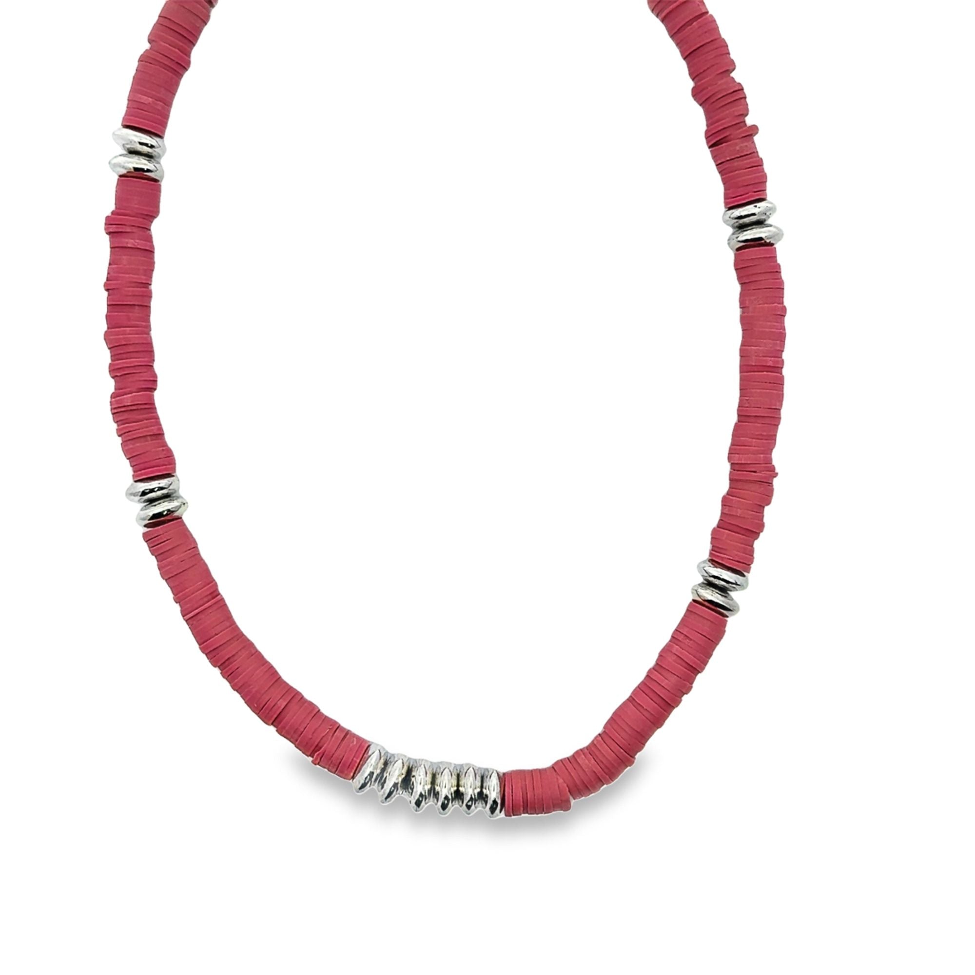 6mm Colorful Polymer Clay Disc Necklace With Rhodium Round Beads (F199)