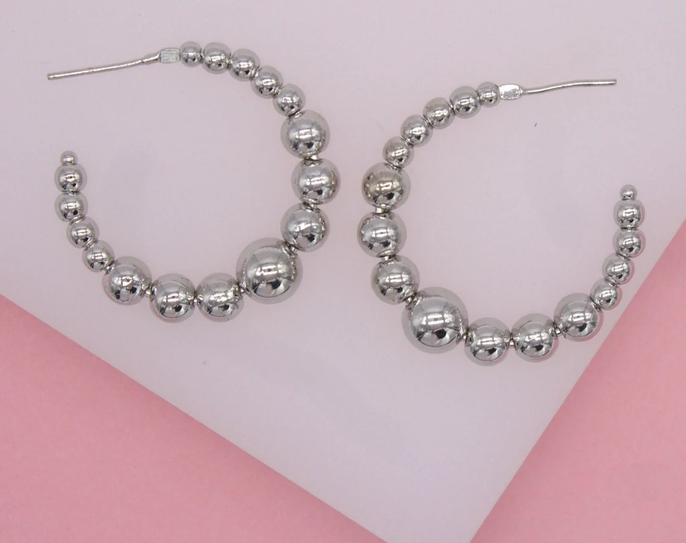 18K Rhodium Filled Beaded Hoops | Silver Beaded Hoops (K75)