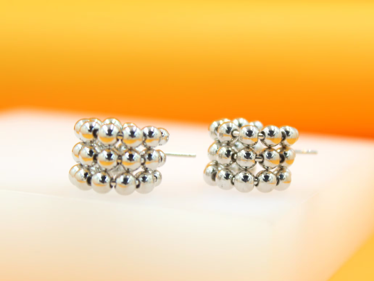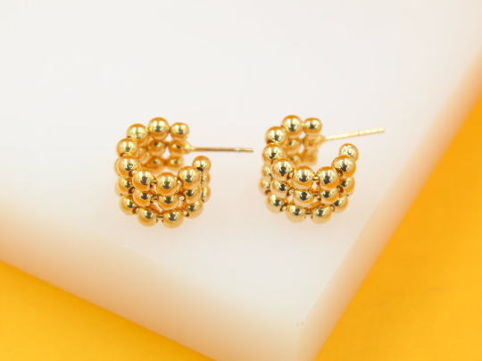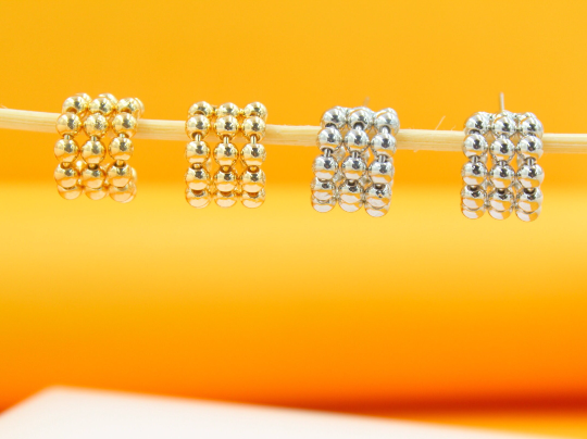 18K Rhodium Filled Beaded Push Back Open Hoop Earrings