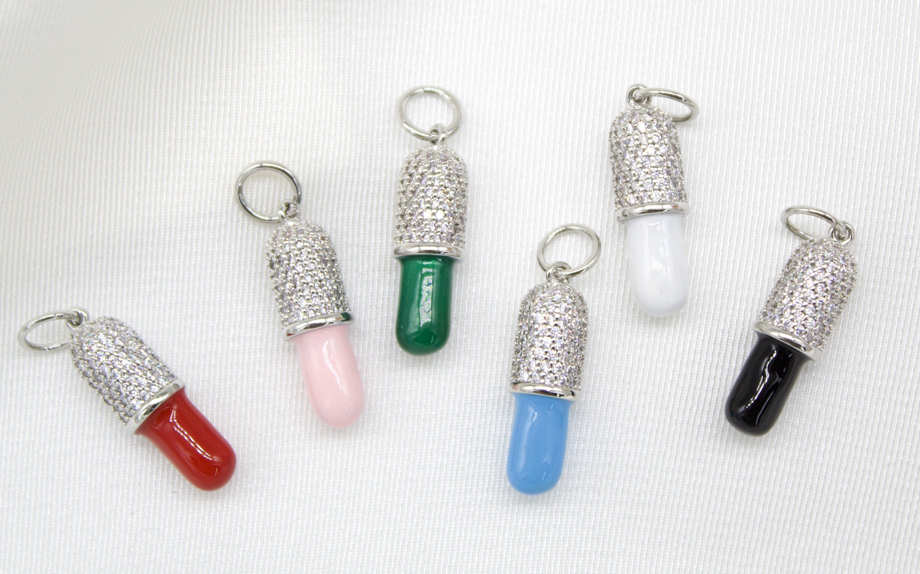 18K Rhodium Filled Enamel Pill Pendant With Micro Pave Cz stones (A183)
