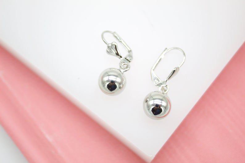 18K Rhodium Filled Pearl Latch Lever Back Earrings (L210)