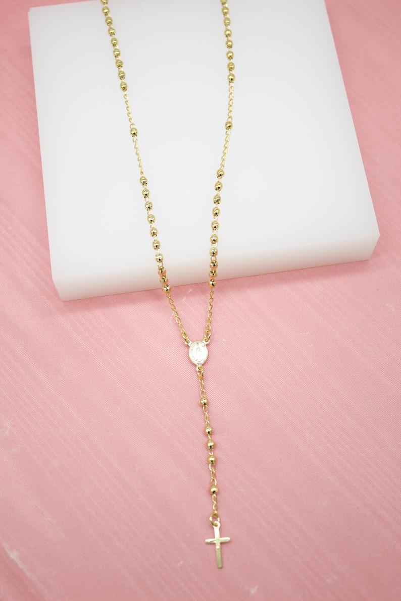 Catholic Gold Bead Rosary With Crucifix And Milagros Charm (F32)