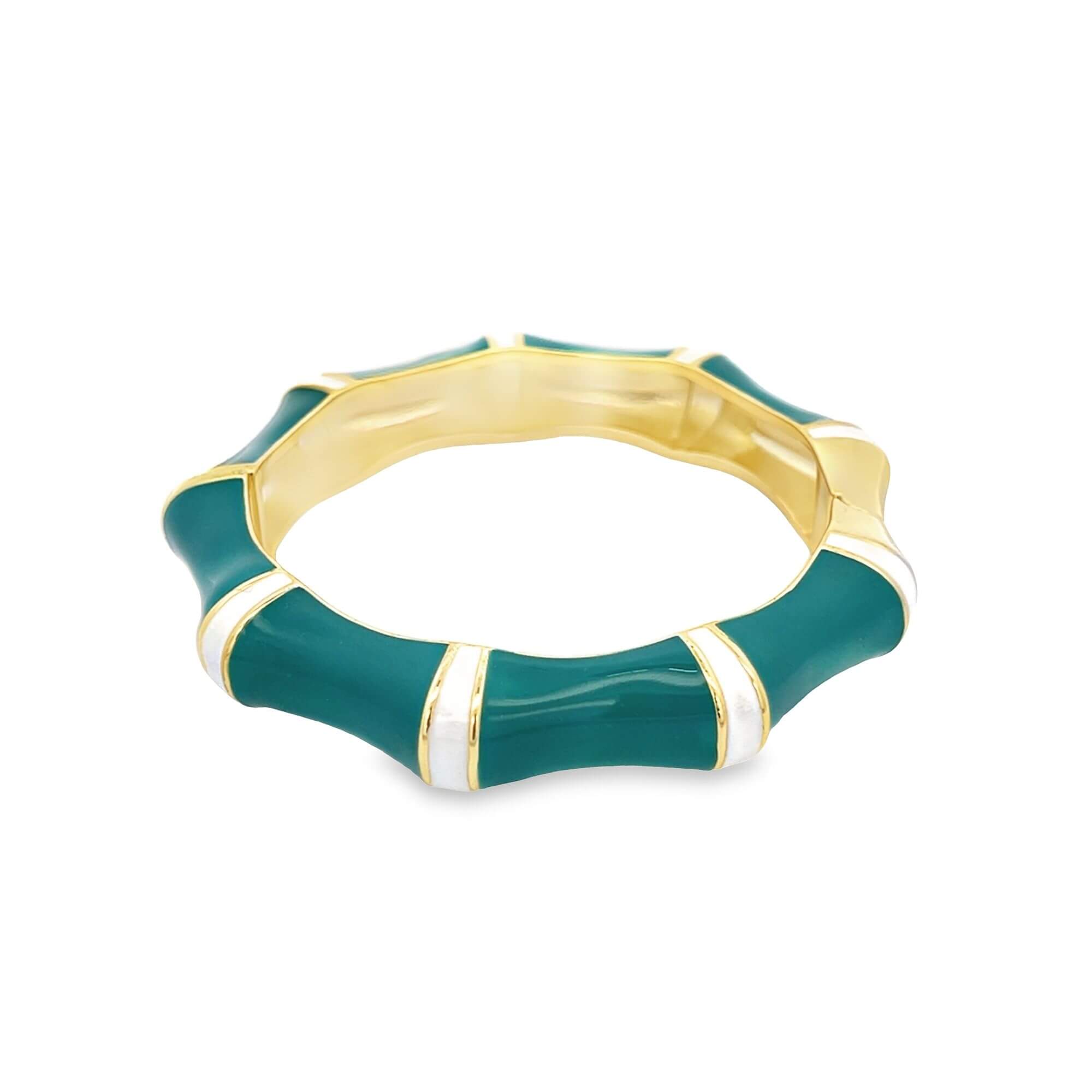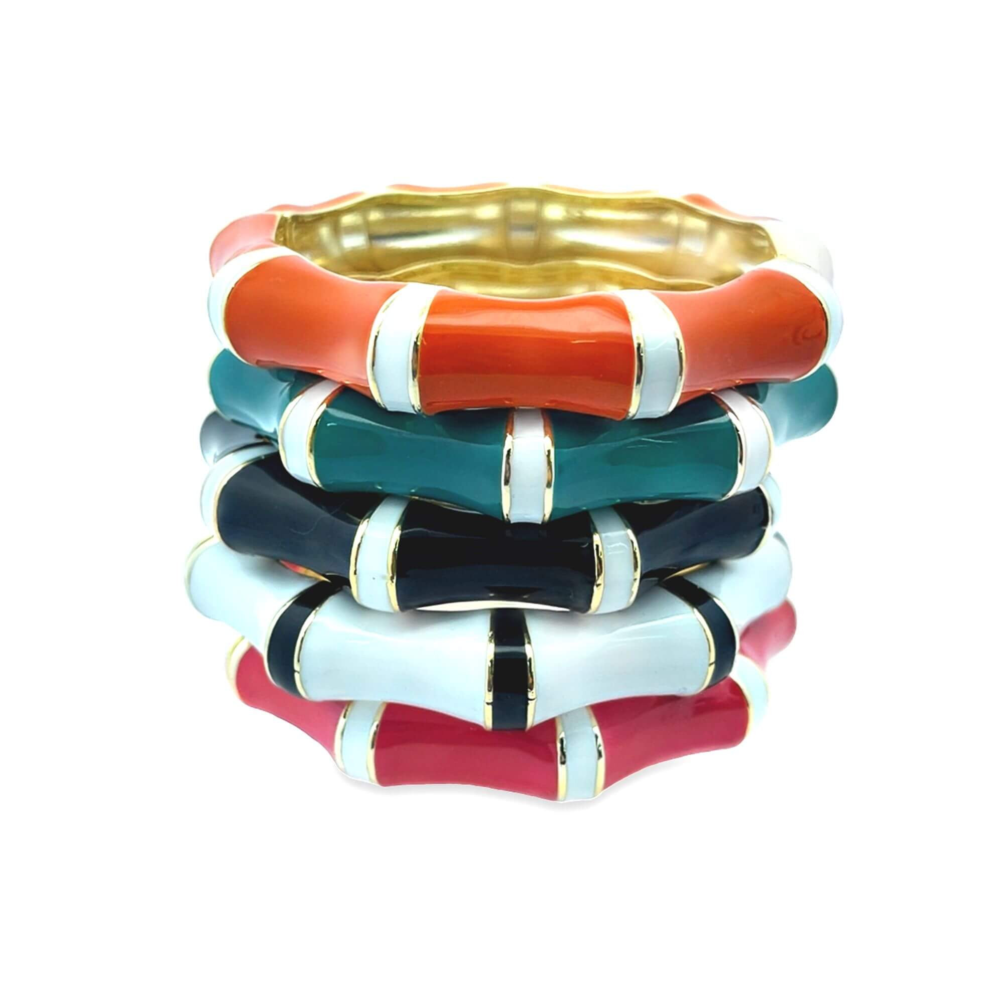 Add a touch of exotic sophistication to your look with our Colorful Bamboo Style Bangle. This luxurious accessory is crafted with vibrant bamboo-inspired enamel and finished with a glossy shine. Elevate any outfit with the bold and elegant design of this stylish bangle.