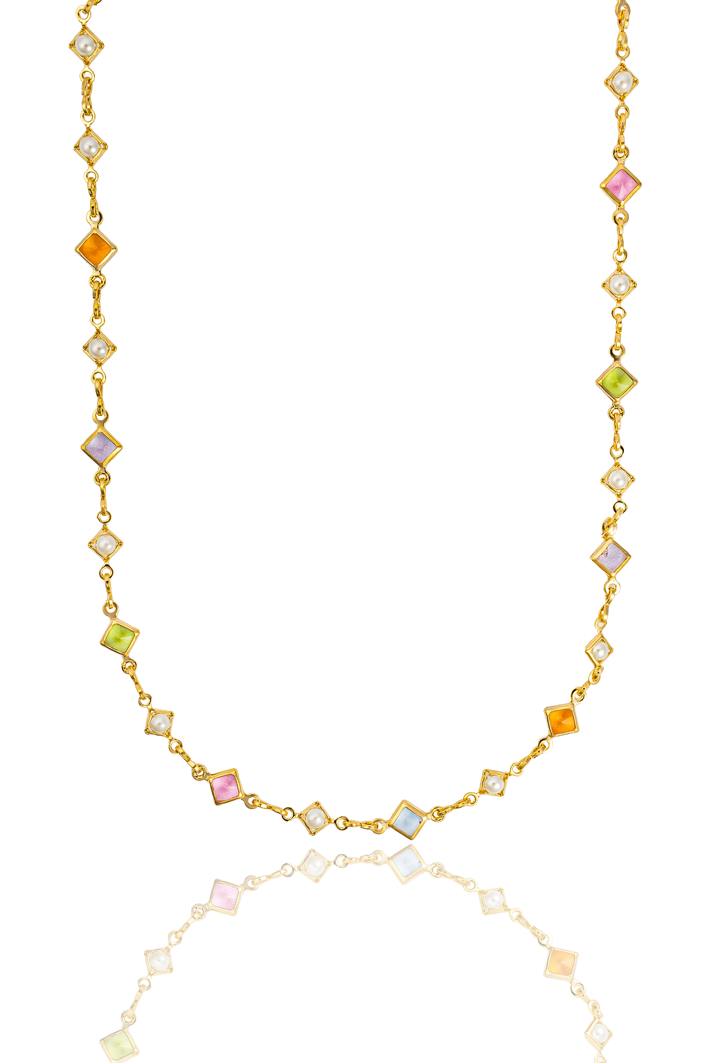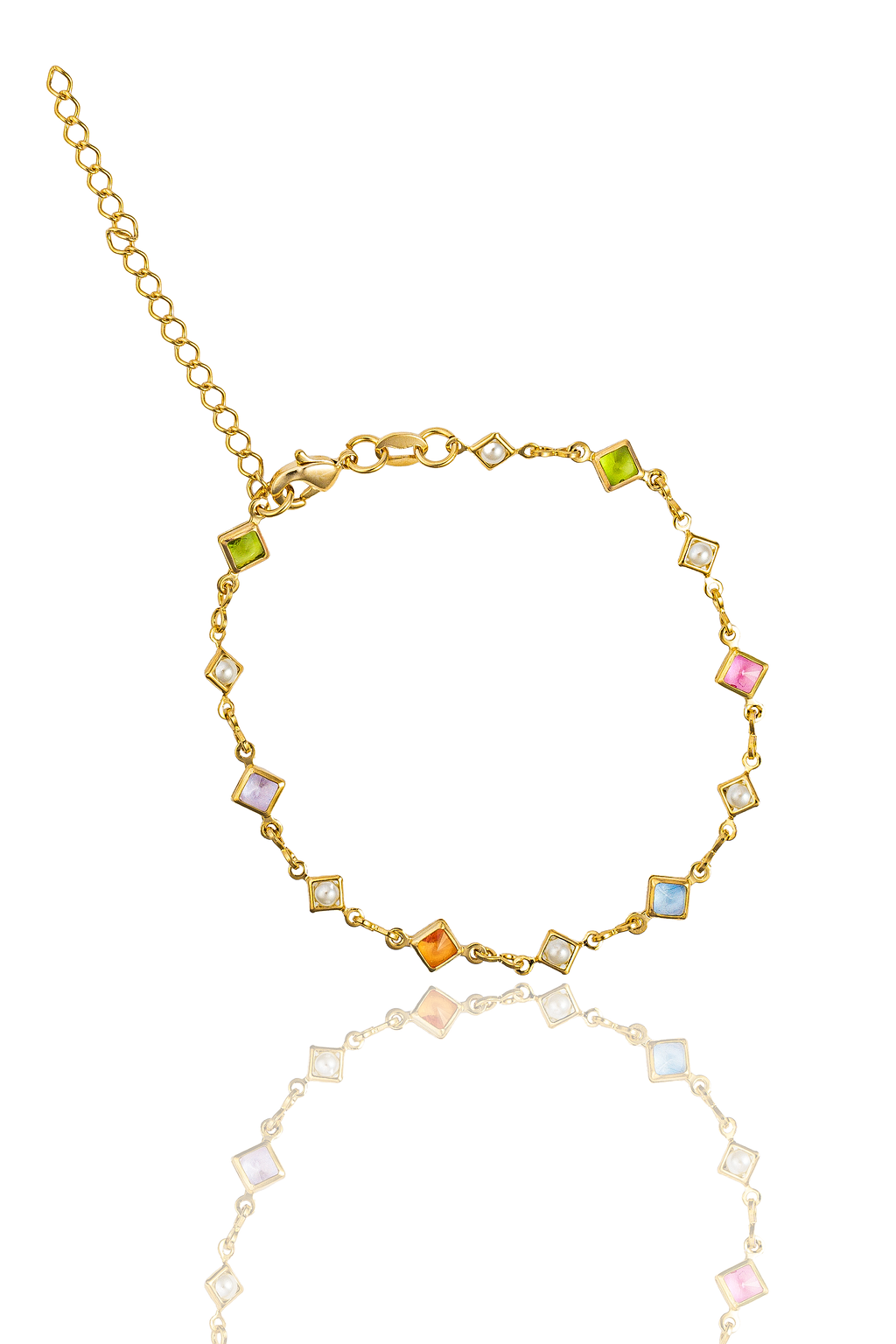 Indulge in the timeless elegance of this Diamond Frame Pearl and Enamel Stone Infinity Link Bracelet. The diamond frame adds a touch of sparkle to the lustrous pearl and vibrant enamel stone, creating a luxurious piece that will elevate any outfit. The infinity link design symbolizes everlasting beauty and sophistication. Perfect for the refined and stylish individual.