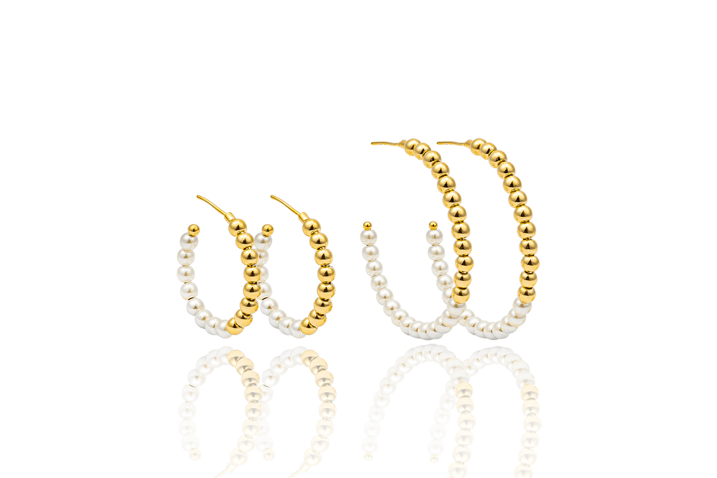 Half Pearl Half Bead Thin Open Hoops (L415-416)