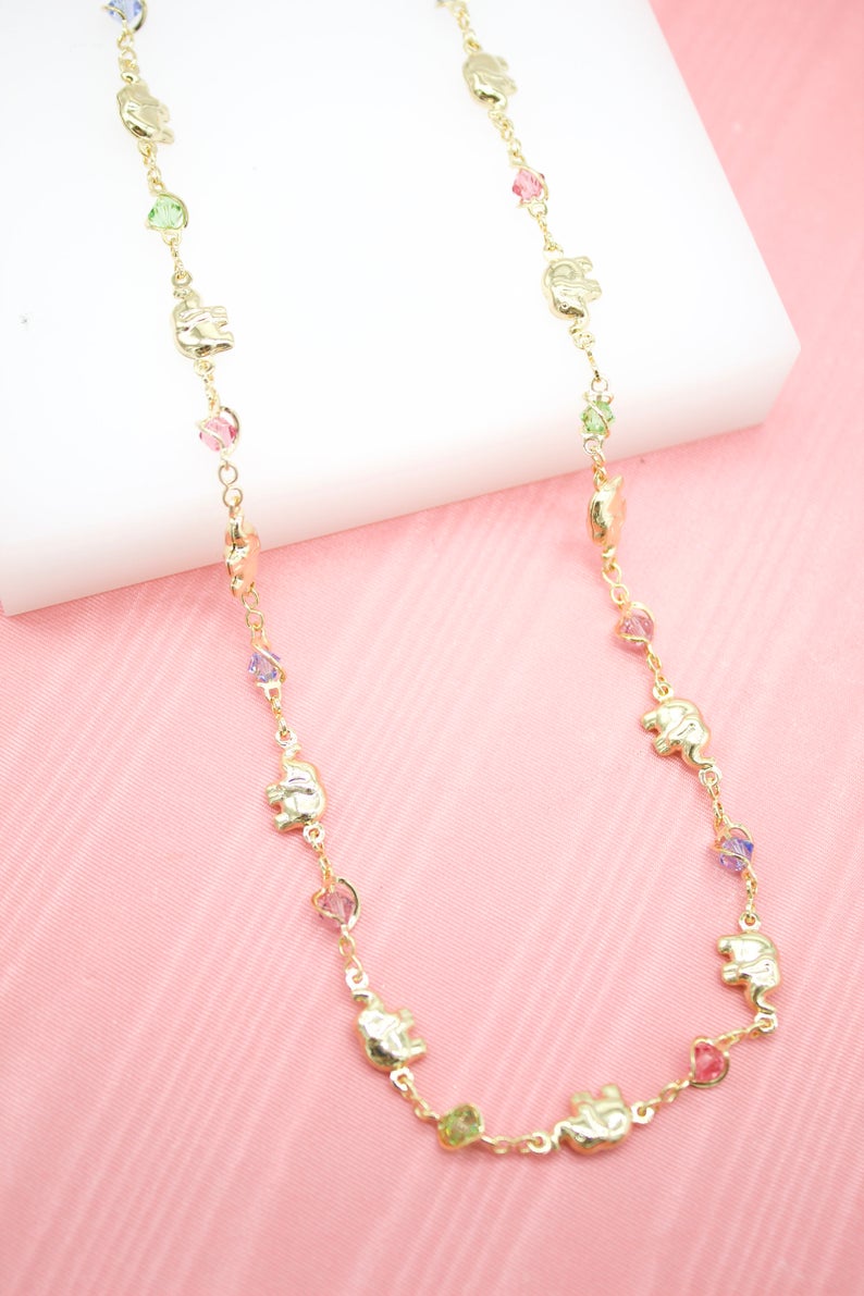 Multi-Color CZ Stones With Elephant Charms Necklace (G11)