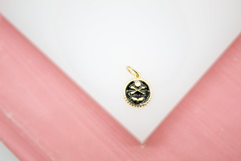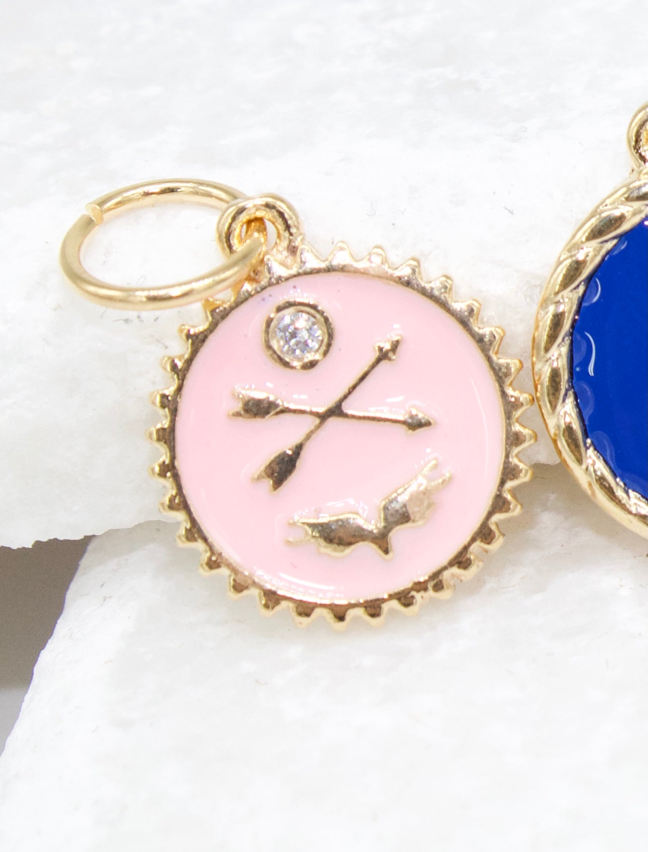Round Enamel Arrows Wings Coin Charm With CZ Stone (A57A)