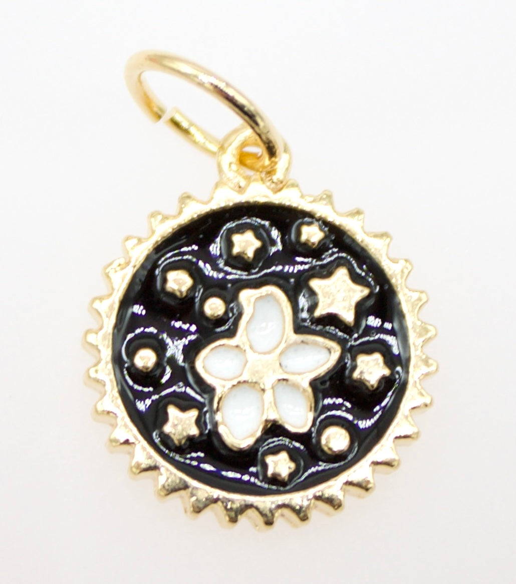 Round Enamel Star Constellation Charm Coin With CZ Stone