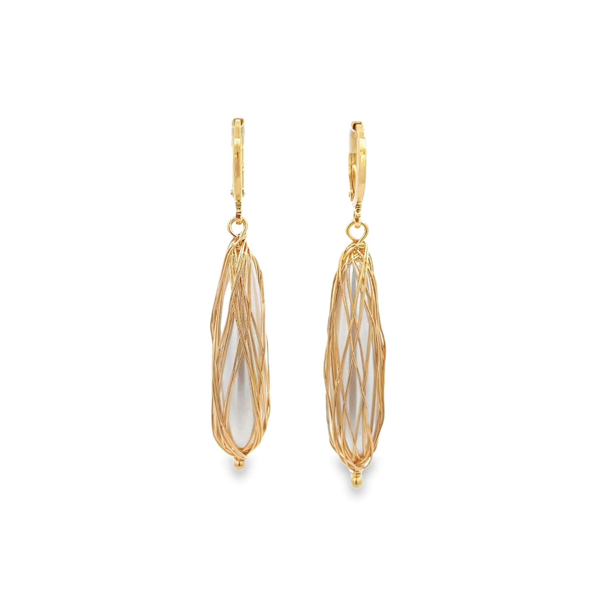 Wire Wrapped Pearl Chandelier Leverback Dangle Drop Earrings