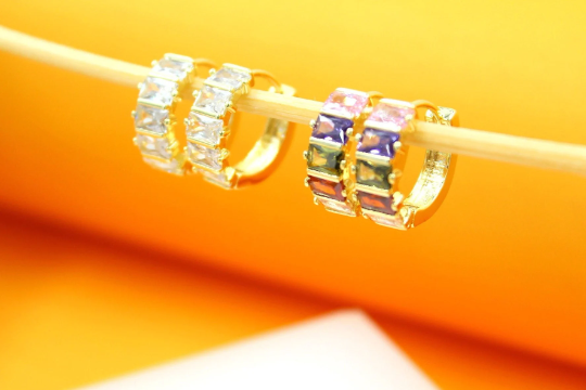18K Gold Filled Multicolored CZ Huggies (L73)
