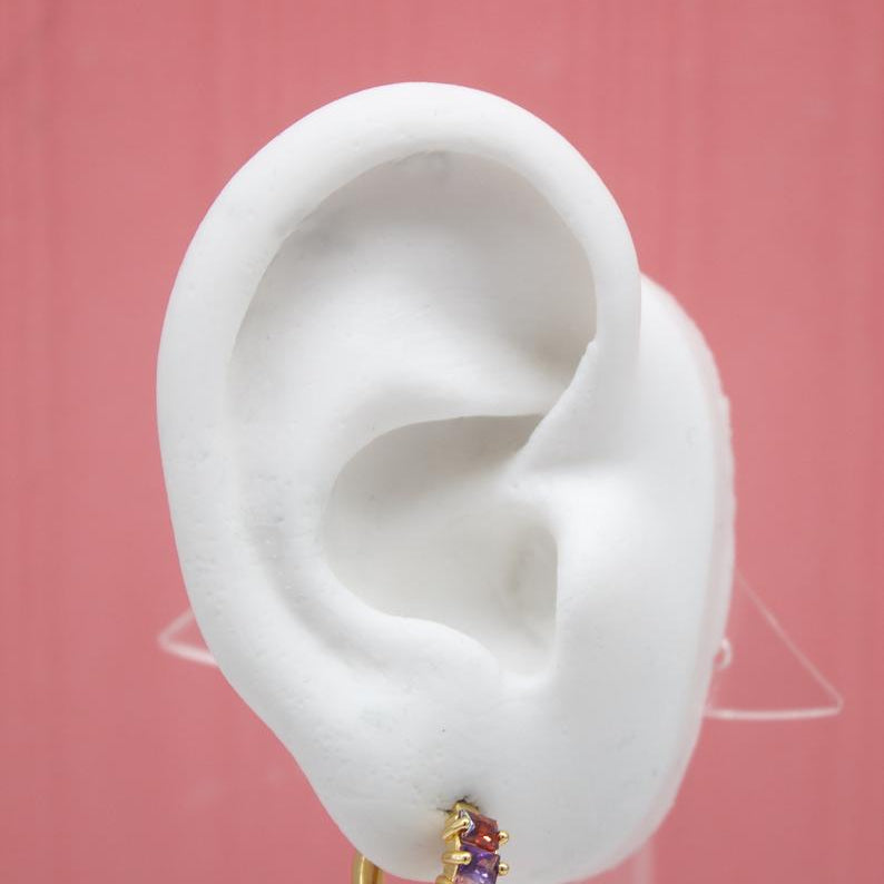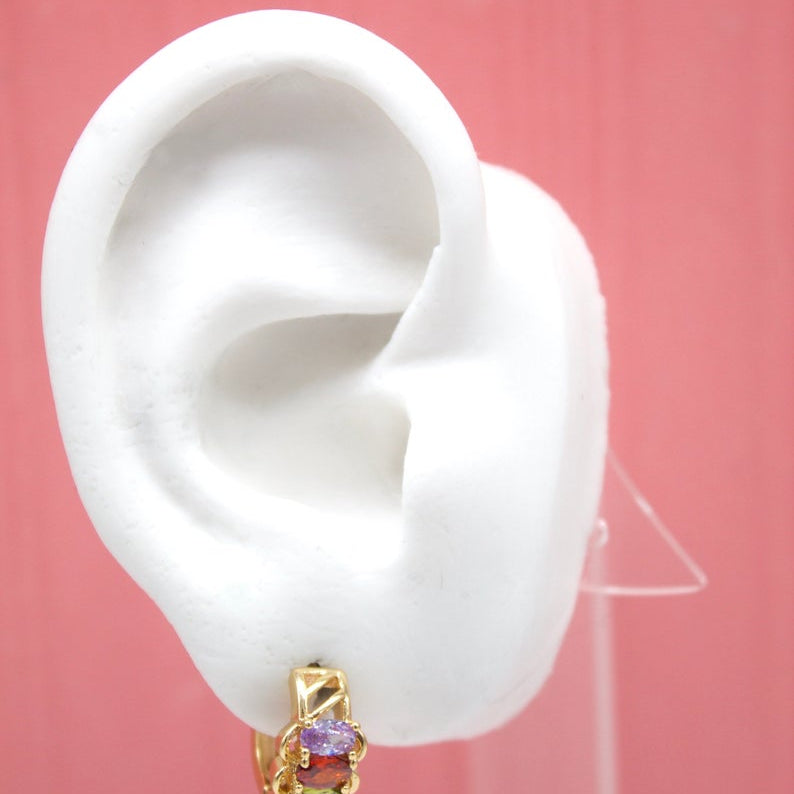 18K Gold Filled Huggies Earrings With MultiColor Oval Shaped CZ Cubic Zirconia Stones