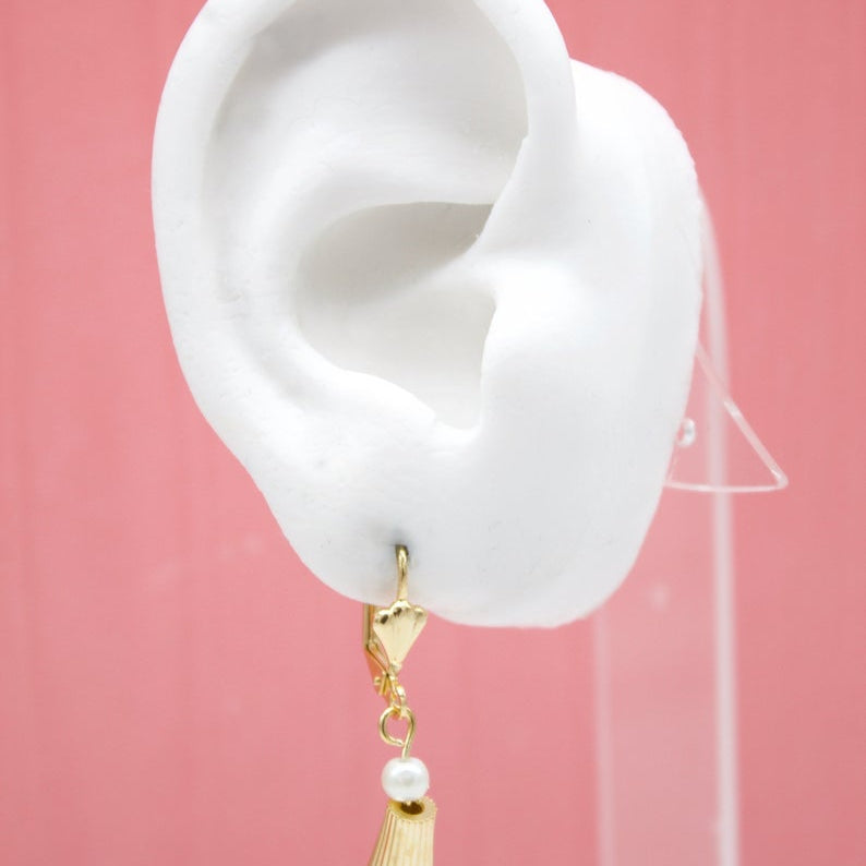 18K Gold Filled Long Golden Dangle Pearl Earrings