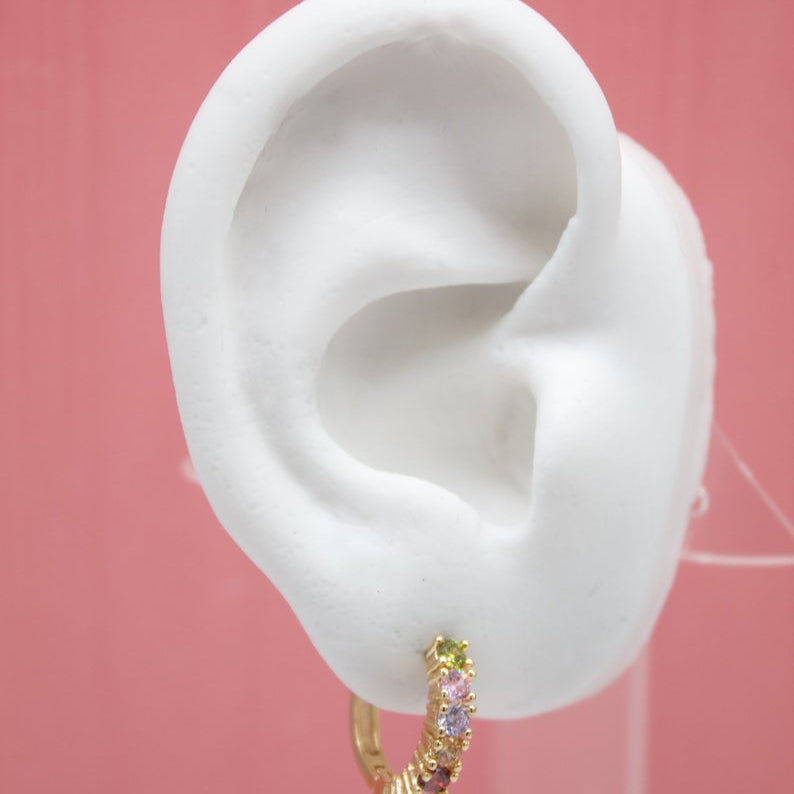 18K Gold Filled Huggies Earrings With Round Multi Color CZ Cubic Zirconia Stones (STYLE C)