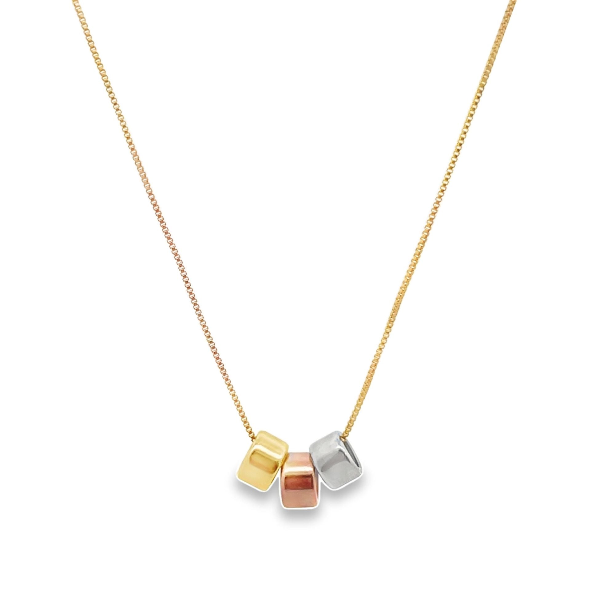18K Gold Filled Three Toned Round Charm Necklace (G149)