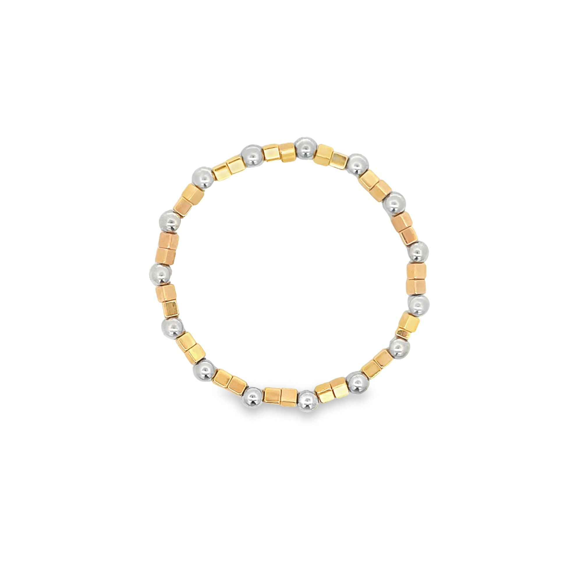 Take your outfit to the next level with our 18K Gold Filled Two Tone Beaded Boho Bracelet! The perfect accessory for those who love to take risks and stand out from the crowd. The unique blend of two tones and beaded design adds a touch of adventure to any look. Elevate your style now!