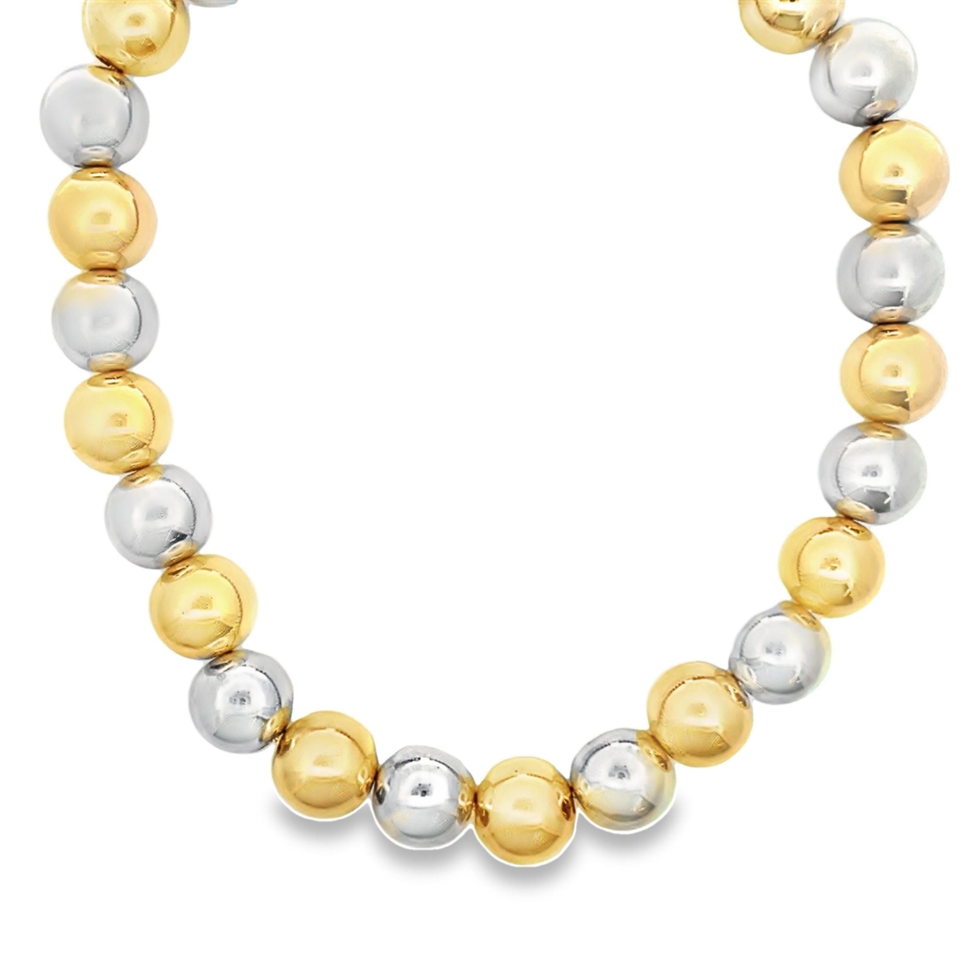 Elevate your style with our 18K Gold Filled Two Toned Beaded Necklace. Made with high-quality materials, this necklace adds a touch of elegance to any outfit. The two-toned design not only makes a statement, but also offers versatility in pairing with different looks. Upgrade your jewelry collection with this must-have piece.