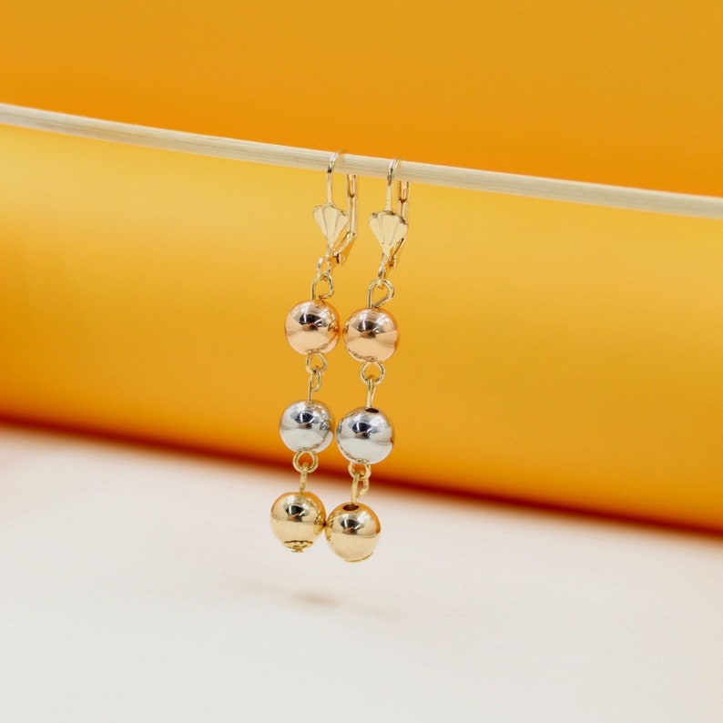 18K Gold Triple Tone Beaded Dangle Earring (K309)
