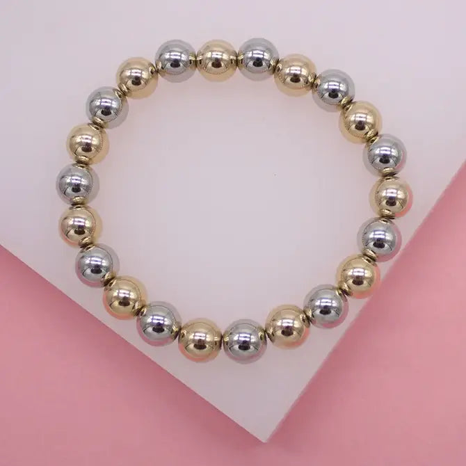 Indulge in luxury with our Two Tone 8mm Beaded Bracelet. Crafted with exquisite detail, this bracelet features a two-tone design and 8mm beads that add a touch of elegance to any outfit. Elevate your style with this exclusive piece.