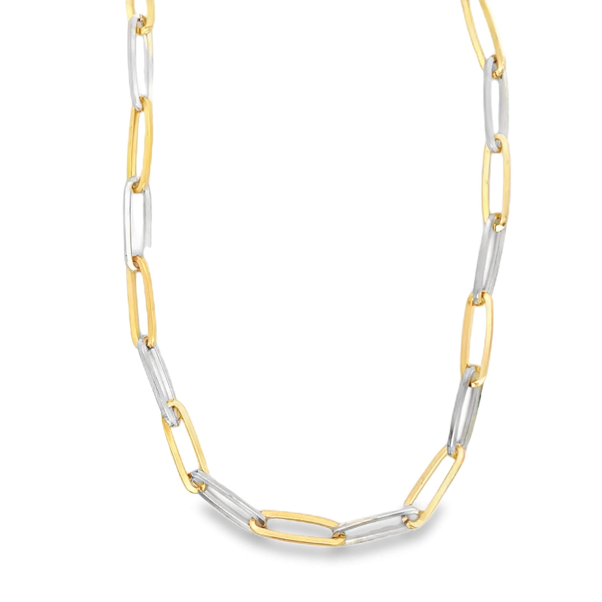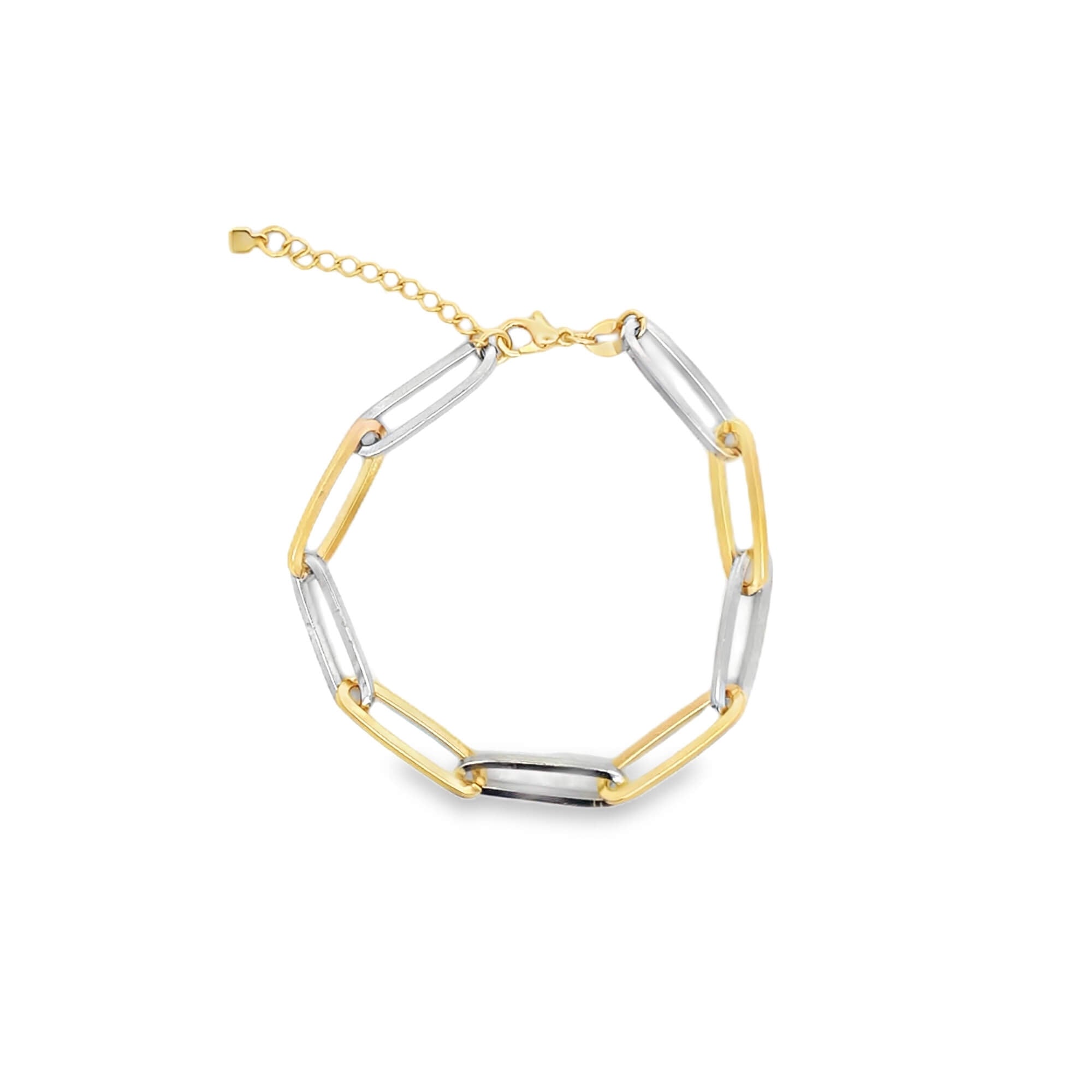 Indulge in the ultimate statement of luxury with our Two Toned 7mm Wide Oval Clip Bracelet. Crafted with precision, this elegant accessory features a sleek and stylish design that will elevate any outfit. The perfect balance of sophistication and exclusivity, it's a must-have for any fashion-forward individual who appreciates the finer things in life.