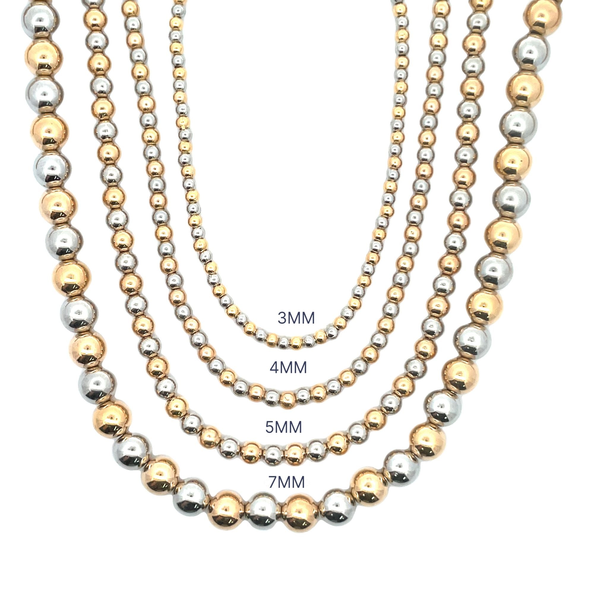 Enhance your look with this exquisite two toned beaded necklace. Crafted with intricate detail and high quality materials, this necklace is sure to elevate any outfit. The perfect addition to any jewelry collection, it exudes elegance and sophistication. Make a statement with this luxurious piece.