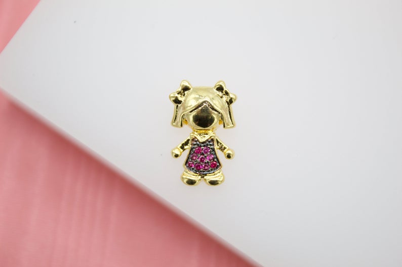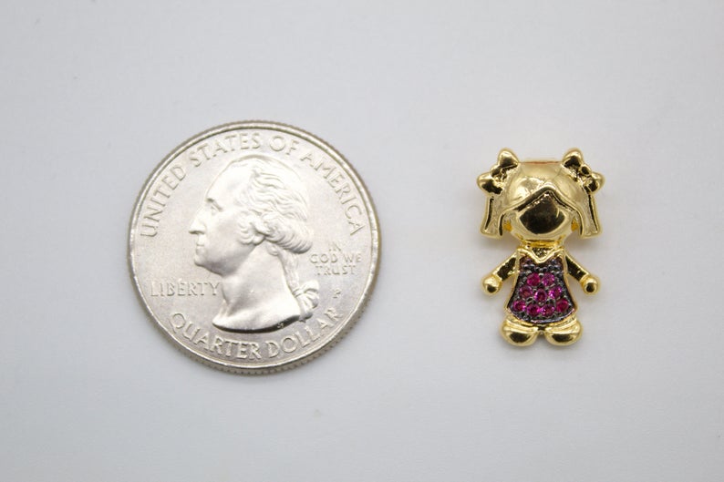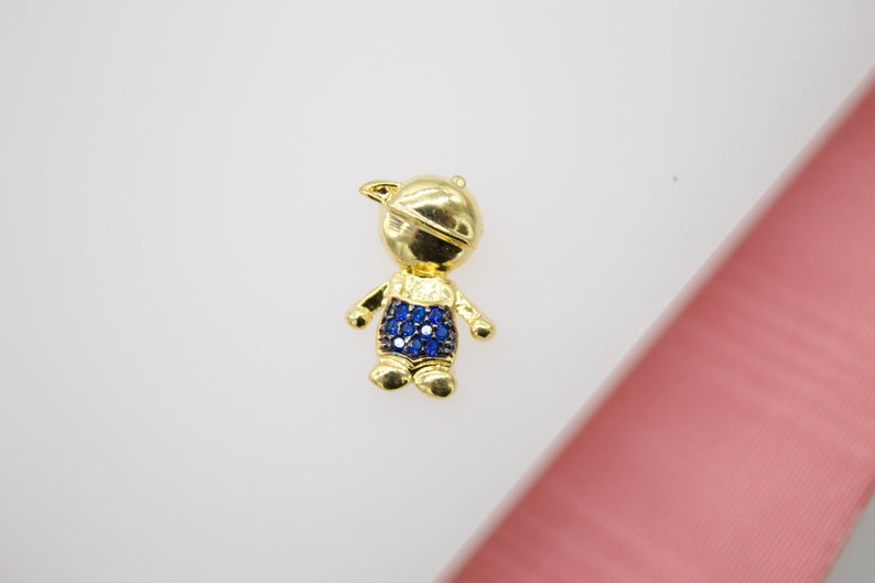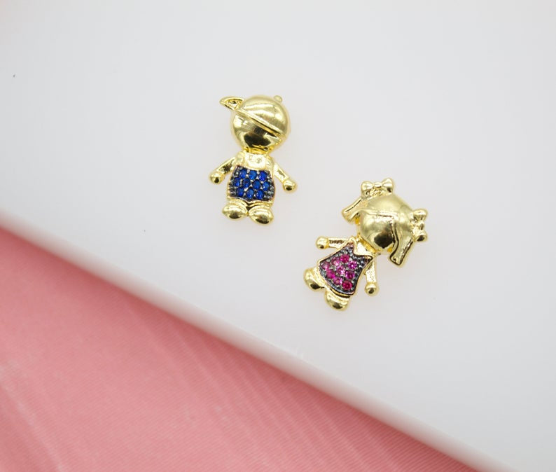 Boy & Girl Pendant Charms With Purple and Blue Cubic Zirconia Stone